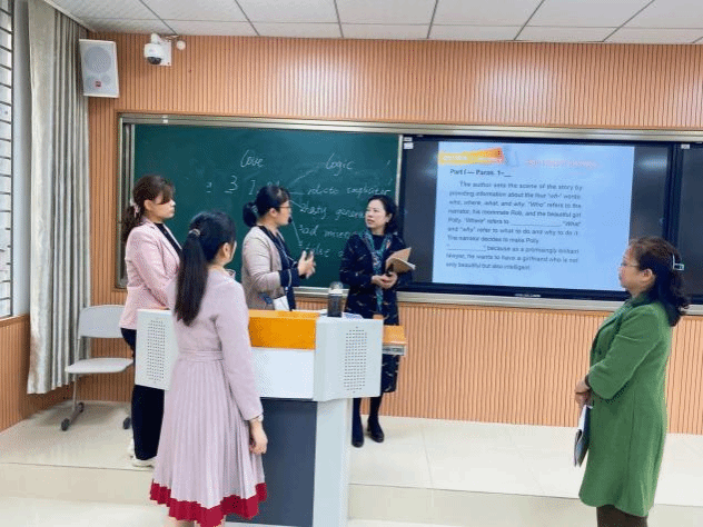 新学期第一天,2023年2月20日上午第二节课,我校党委委员韩君华副校长在外国语学院马玉蓉院长的陪同下深入课堂一线,在实C204教室听取了外国语学院姚尧老师“Love and Logic”主题课程,同学们学习热情饱满,出勤率高,教师备课充分。随行听课的还有外国语学院杨海燕副院长、系主任林勇老师和丰海利老师。