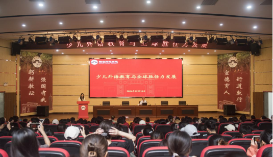 2024 年 12 月 10 日下午,一场精彩的讲座在琼台师范学院图书馆报告厅举行。此次讲座主题为“少儿外语教育与全球胜任力发展”,特邀上海外国语大学教授、博士生导师梅德明主讲,外国语学院孔燕副院长主持讲座。梅教授以其深厚的学术底蕴和丰富的教学经验,为在场师生带来了一场思想的盛宴。