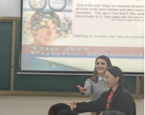 在核心教学环节“Transforming Nervousness into Confidence”中,Ani老师系统阐述了将焦虑转化为自信的实践策略:强调持续积累公众演讲经验的重要性;重点示范了心理预演(visualization)技巧的应用,引导学生在演讲前通过具象化想象成功的场景强化心理建设。这些策略直指“从理论认知到行为改变”的教学目标,为学生提供了可迁移的自我训练方法。