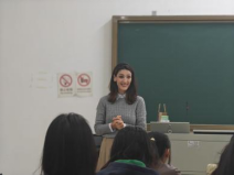 2025年3月7日下午,外国语学院英语系在实D105开展了“英语演讲与辩论”课程的教学公开课活动,主题是“公众演讲与克服舞台恐惧”。本次公开课由外籍教师Ani主讲,校级督导马玉蓉和展金梅、学院副院长杨海燕、英语系主任丰海利及10余位教师代表共同参与了教学观摩与课后研讨活动。Ani老师的示范课结构严谨、思路清晰,聚焦如何克服舞台恐惧,通过互动讨论、真实案例分析与实践演练,构建了师生在互动交流中共建知识、提升演讲能力的良好课堂氛围,获得了听课领导和教师的一致好评。