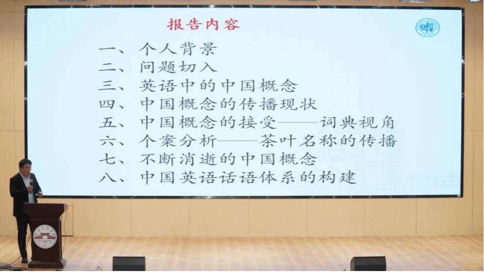 2025年11月26日晚19:30,外国语学院在琼先楼209报告厅举办了“琼台讲坛”专题讲座,特邀复旦大学外文学院高永伟教授(院长)为外国语学院师生带来了题为“中国概念词在英语世界的传播与接受”的精彩分享。高教授结合自身双语词典编纂、词典史、词汇学和术语学的研究兴趣及突出成就,以幽默的语言、生动的事例系统梳理了中国概念词在英语世界中的发展脉络、传播现状及其对于构建中国英语话语体系的重要意义。讲座由杨海燕副院长(主持工作)主持,外国语学院的教师、23和24英语班学生聆听了讲座。