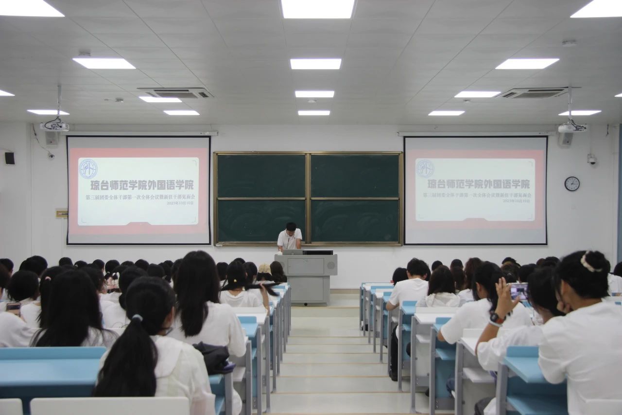 夏草秋,秋风拂,浮云坠,但文科楼C301内语笑喧阗,秋日的凉意一扫而空。为了让新任干部们熟悉学生会事务,认识了解各部门,帮助新任干部们成为一名合格的团委成员,全体干部们欢聚一堂,于2023年10月10日下午召开琼台师范学院外国语学院第三届团委全体干部第一次全体会议暨新任干部见面会,本次会议的主持人为学生会主席李奇。