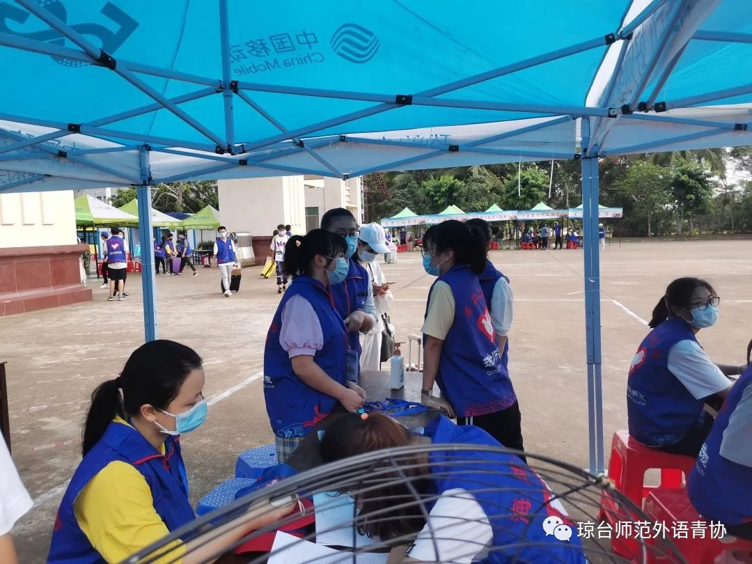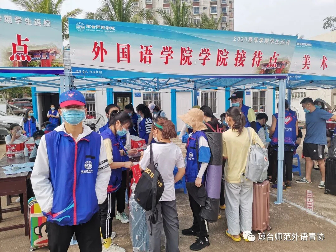 志愿者们早早的来到校门口迎接你们的到来自5月9日开学返校以来