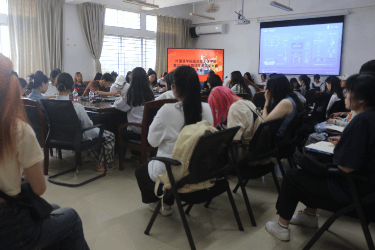 为深入贯彻落实党的二十大精神和学习贯彻习近平新时代中国特色社会主义思想主题教育,加强青年学生的思想政治领悟,进一步发挥青年学生的引领作用。2023年4月26日中午,外国语学院团委于文B205召开各班级团支部第二次会议暨团支部风采大赛动员大会,本次会议由外国语学院团委书记林紫荆老师和团委副书记陈芯妍老师主持。