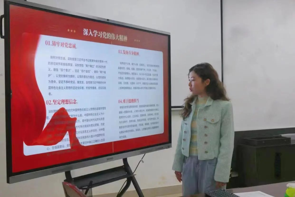 首先,团委书记林紫荆围绕“新时代我们该如何继承并发扬好五四精神、琼台青年如何在学习中发挥好青春力量”进行宣讲,向团支书们介绍了共青团团旗的来源以及意义,激励青年在学思践悟中坚定“请党放心、强国有我”的信念信心,做“有理想、敢担当、能吃苦、肯奋斗”的新时代好青年。