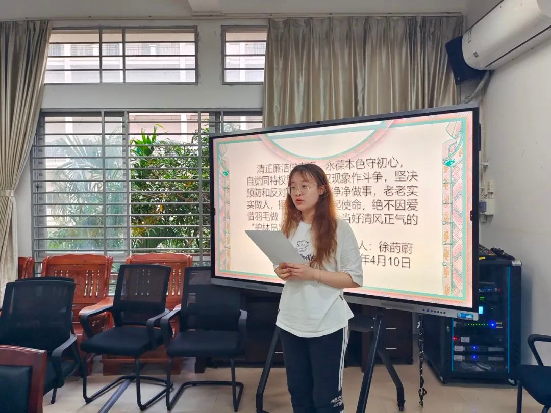为提高学生诚信廉洁的意识,肩负起国家富强、人民幸福、民族复兴的时代重任,我院于4月10日下午6:15在文B205召开廉洁主题部门例会。