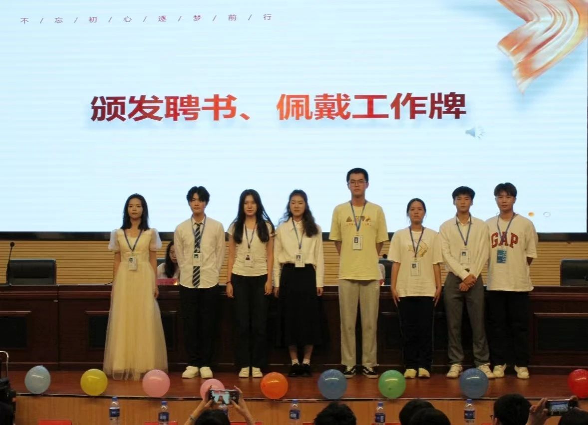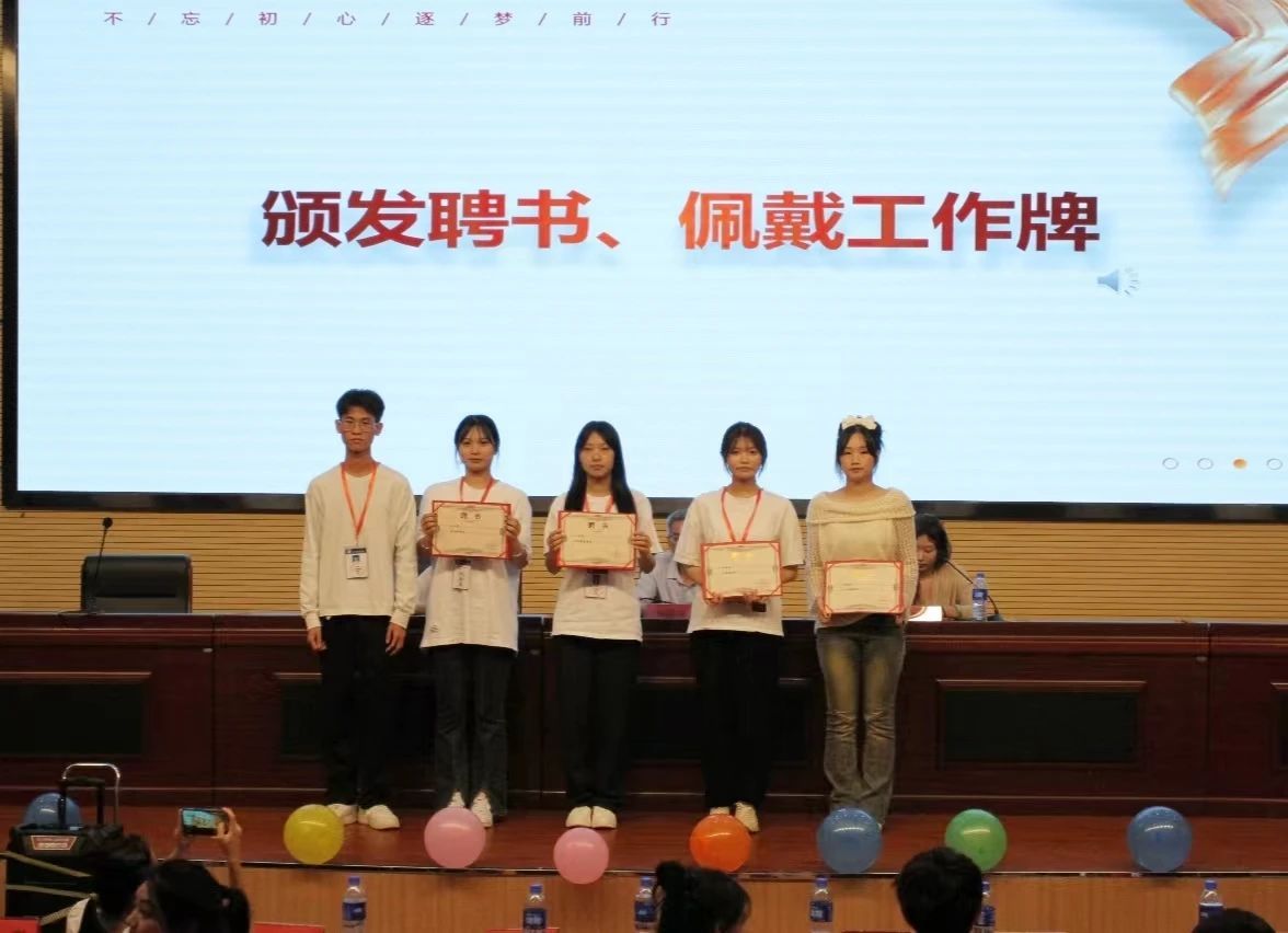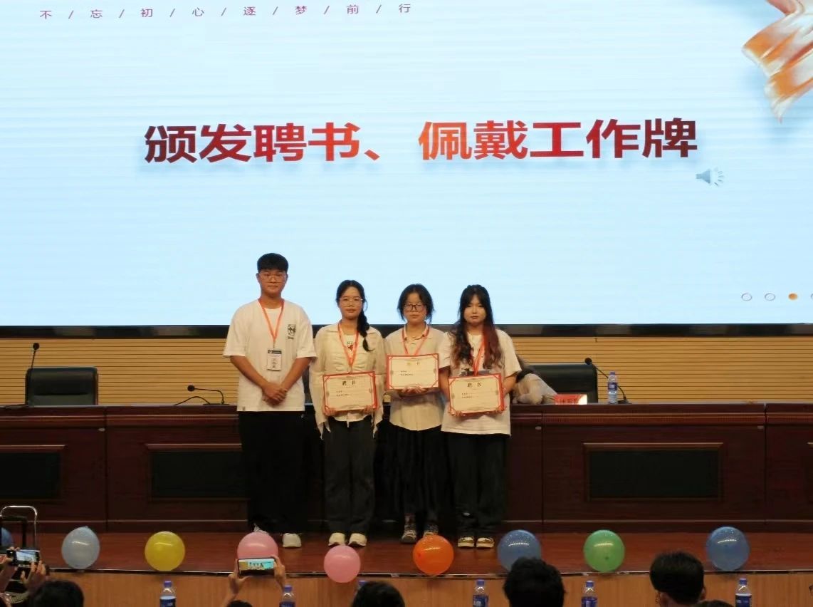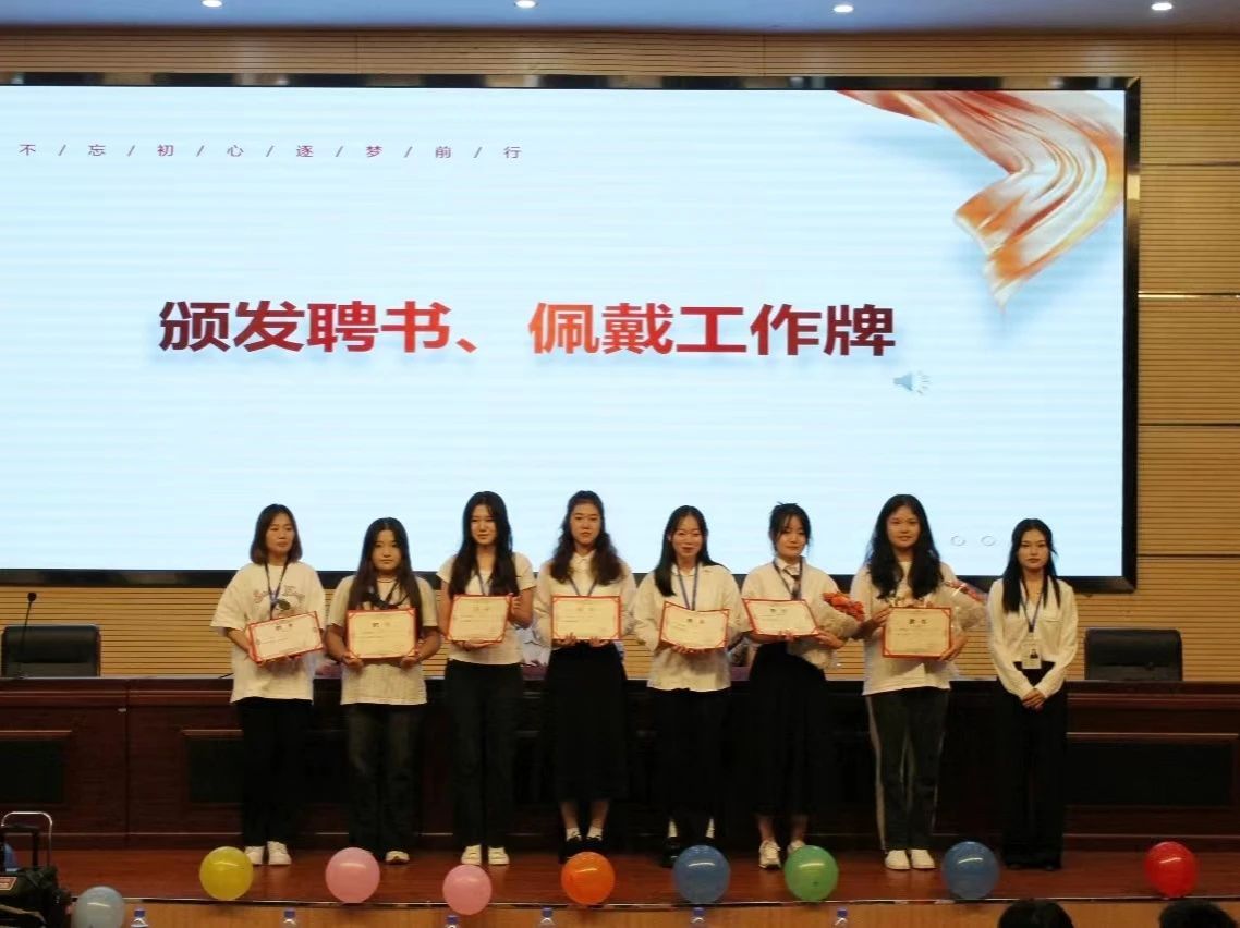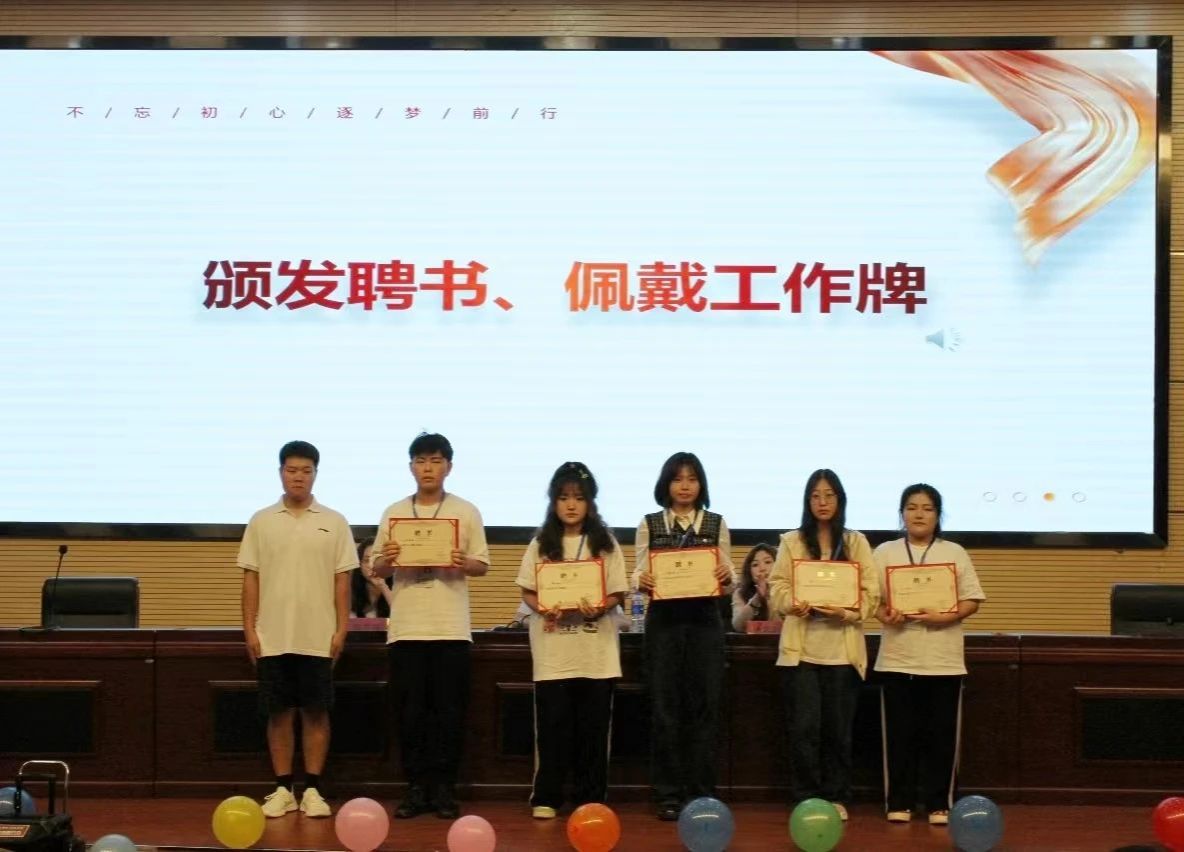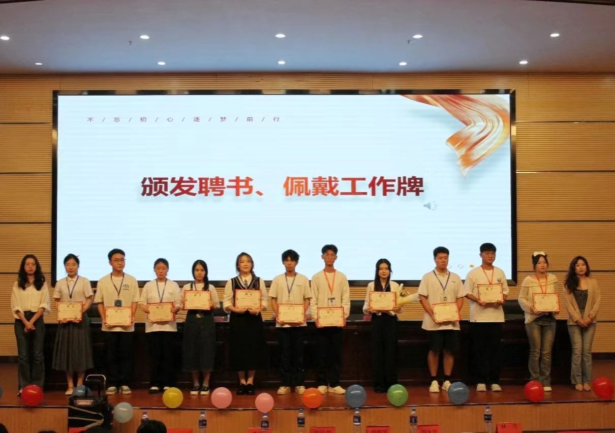 第三届团委学生会主席团、青协理事会和易班主任团给新一任部长颁发聘书。