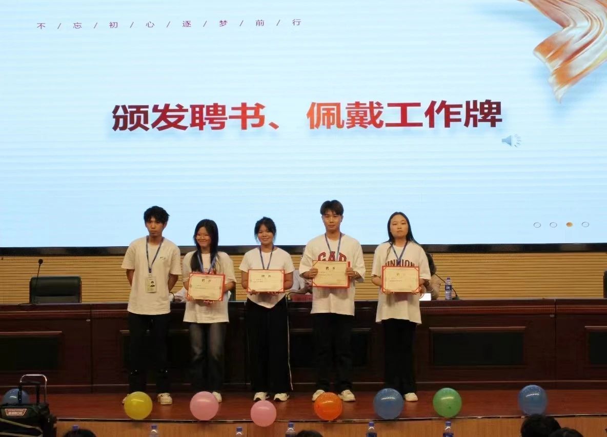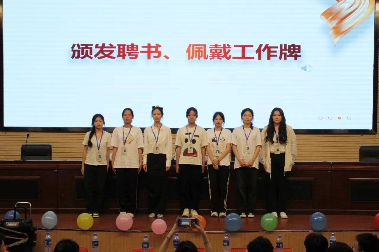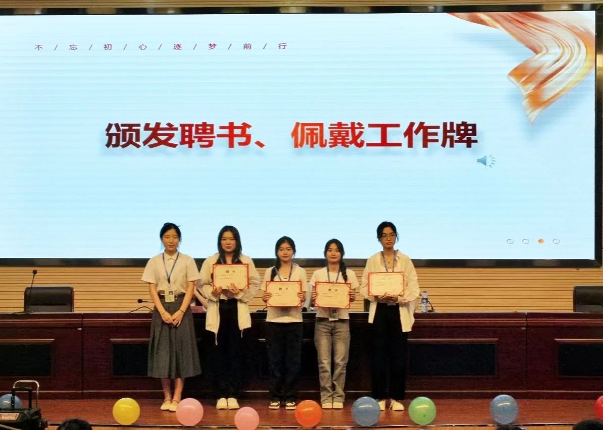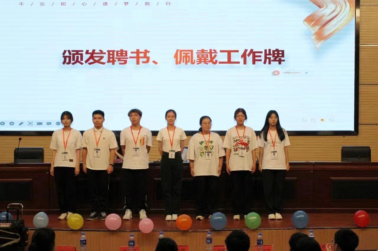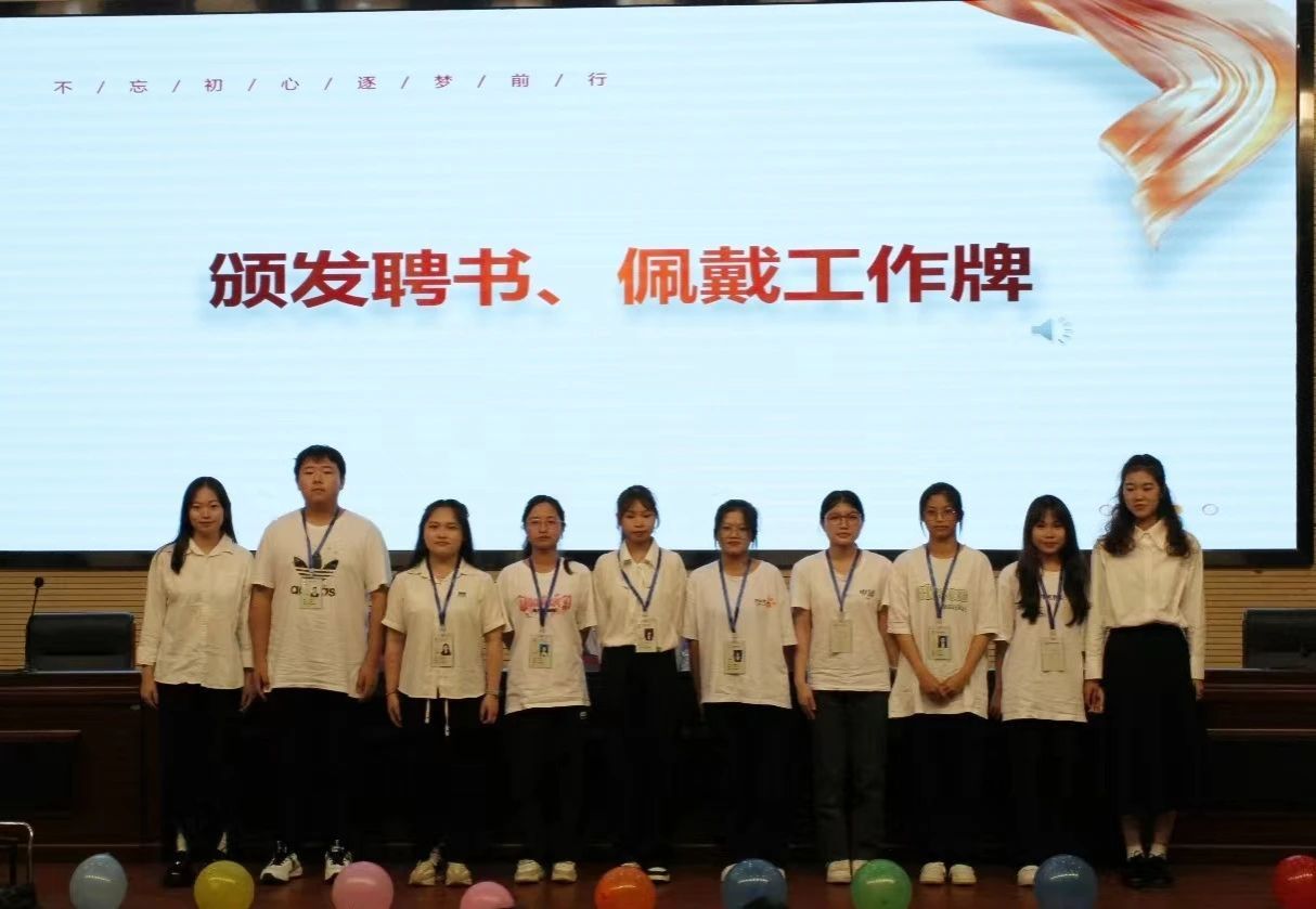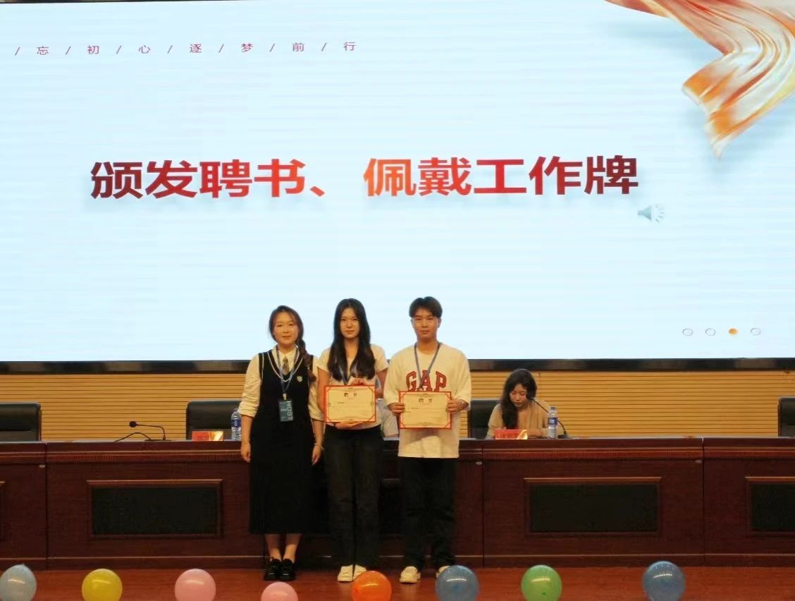 第三届团委学生会主席团、青协理事会和易班主任团给新一任部长颁发聘书。