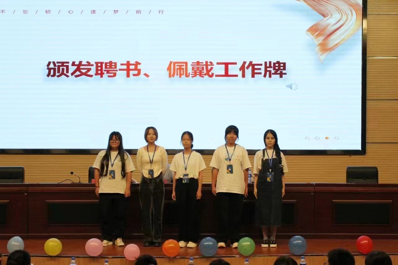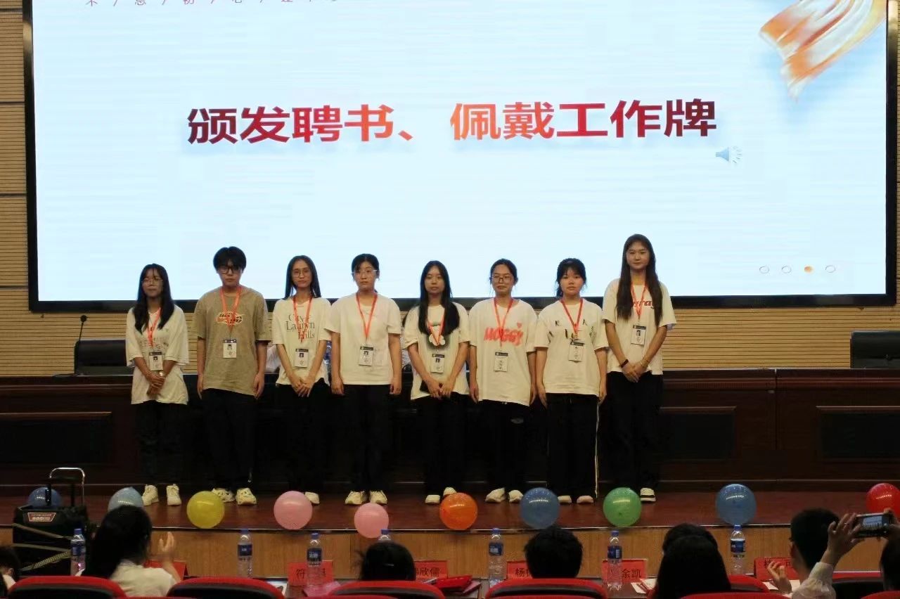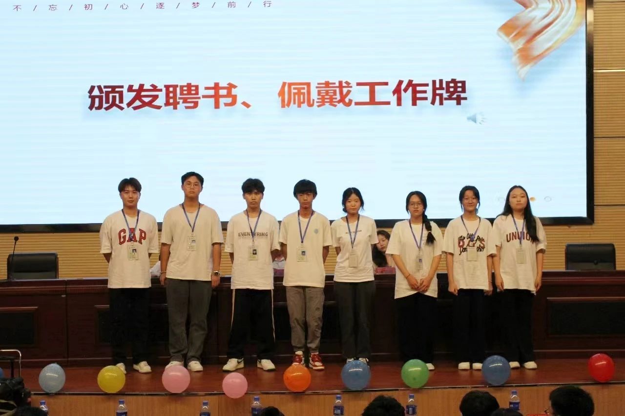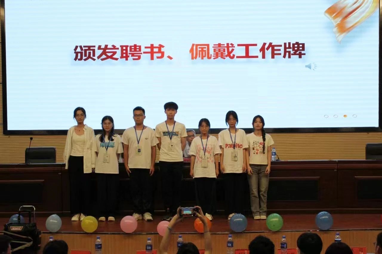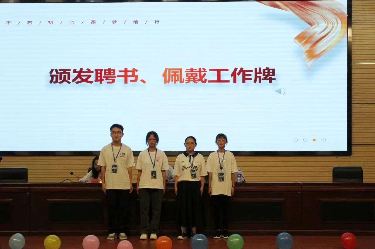 第三届团委学生会主席团、青协理事会和易班主任团给新一任部长颁发聘书。