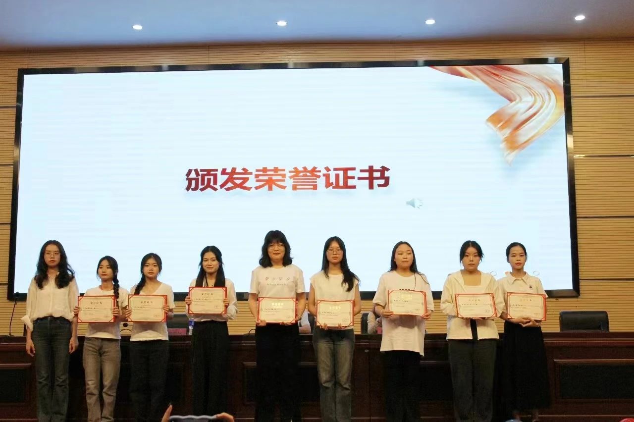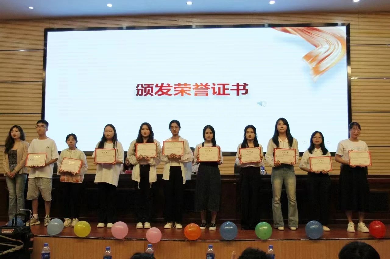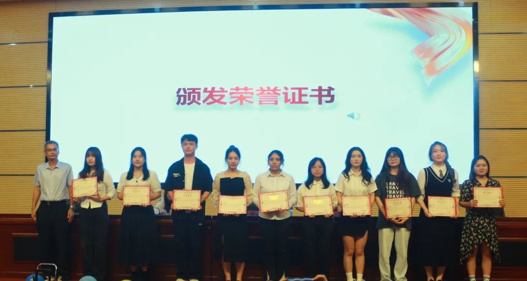 辅导员陈芯妍为上任优秀部长颁奖。
