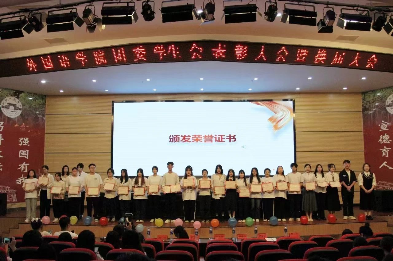 外国语学院党委书记袁昌清为上一届的主席团、青协理事会和易班主任团颁奖。