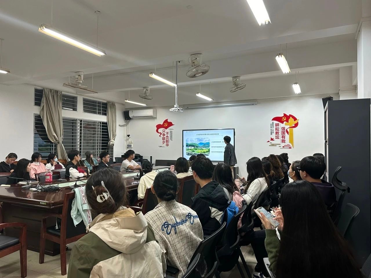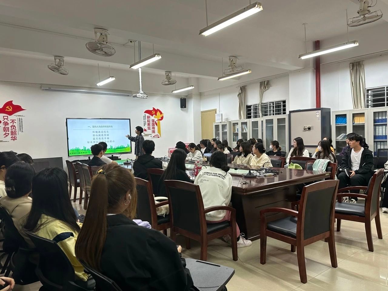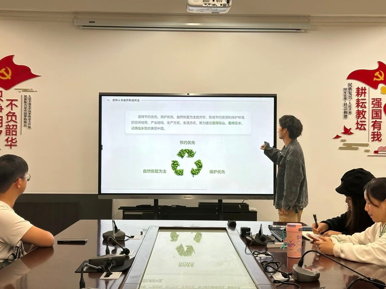 最后大家从社会和个人的角度一起学习了如何推动绿色发展方式和生活方式和作为青年学子我们该如何行动。杨振羽同学呼吁大家增强环保意识、参与相关的志愿服务和低碳出行,推己及人,带动更多人参与到生态文明建设的大工程中。生态文明建设是关系人民福祉,关乎民族未来的千年大计。作为新时代青年我们更应该积极参与到生态文明建设之中,为可持续发展作出贡献。