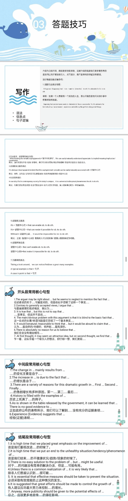 接下来,王丽娟同学在写作上给予了大量的句型资源供同学们参考: