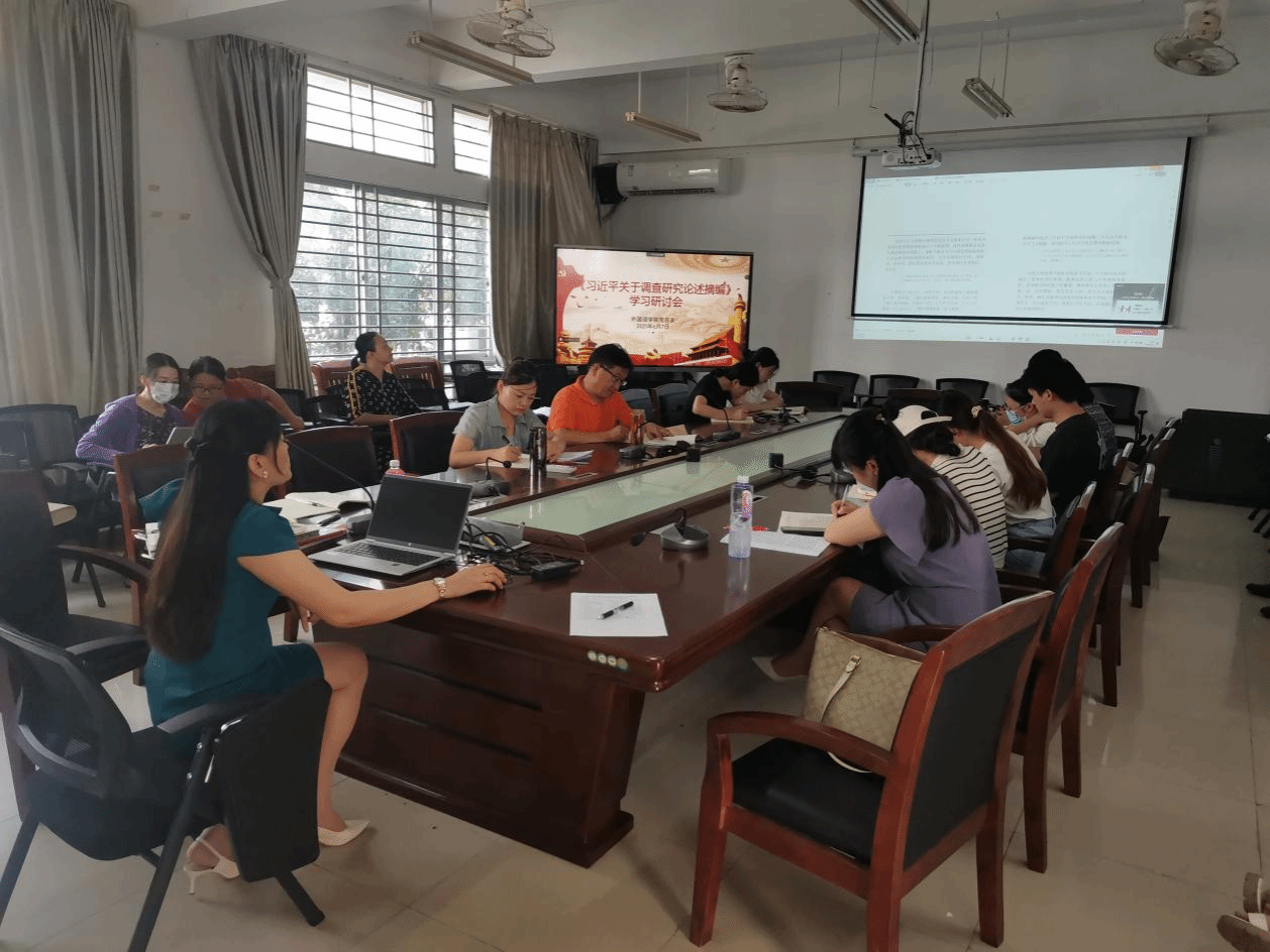 6月7日,外国语学院党总支在文B205开展学习贯彻习近平新时代中国特色社会主义思想主题教育学习研讨会。