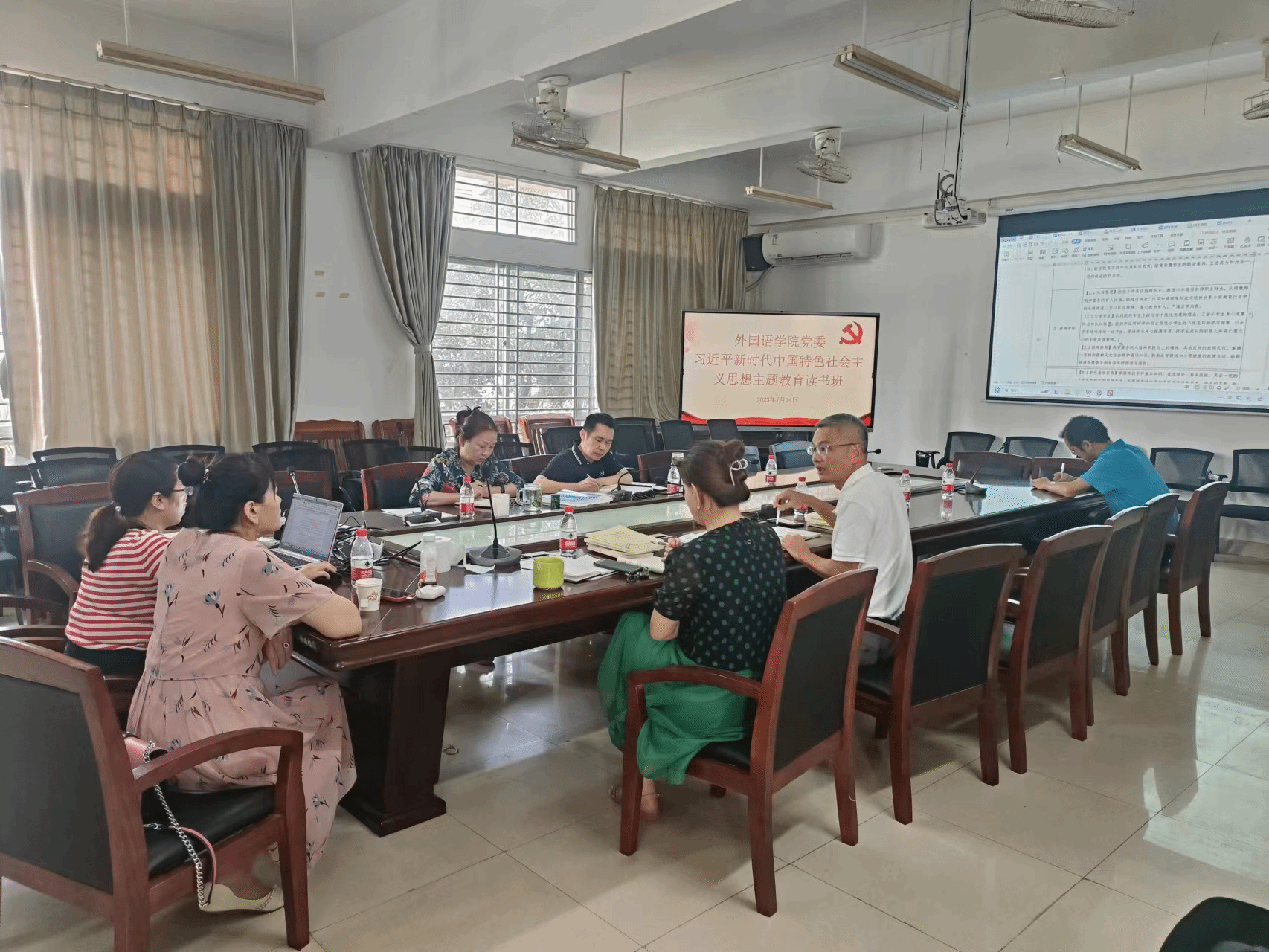 为深入推进学习贯彻习近平新时代中国特色社会主义思想主题教育,外国语学院党委7月14、15日举行学院班子成员读书会,集中学习研讨习近平总书记《论党的自我革命》、习近平总书记在中央政治局第六次集体学习上的讲话,并就外国语学院开展主题教育推动发展相关议题进行了讨论。