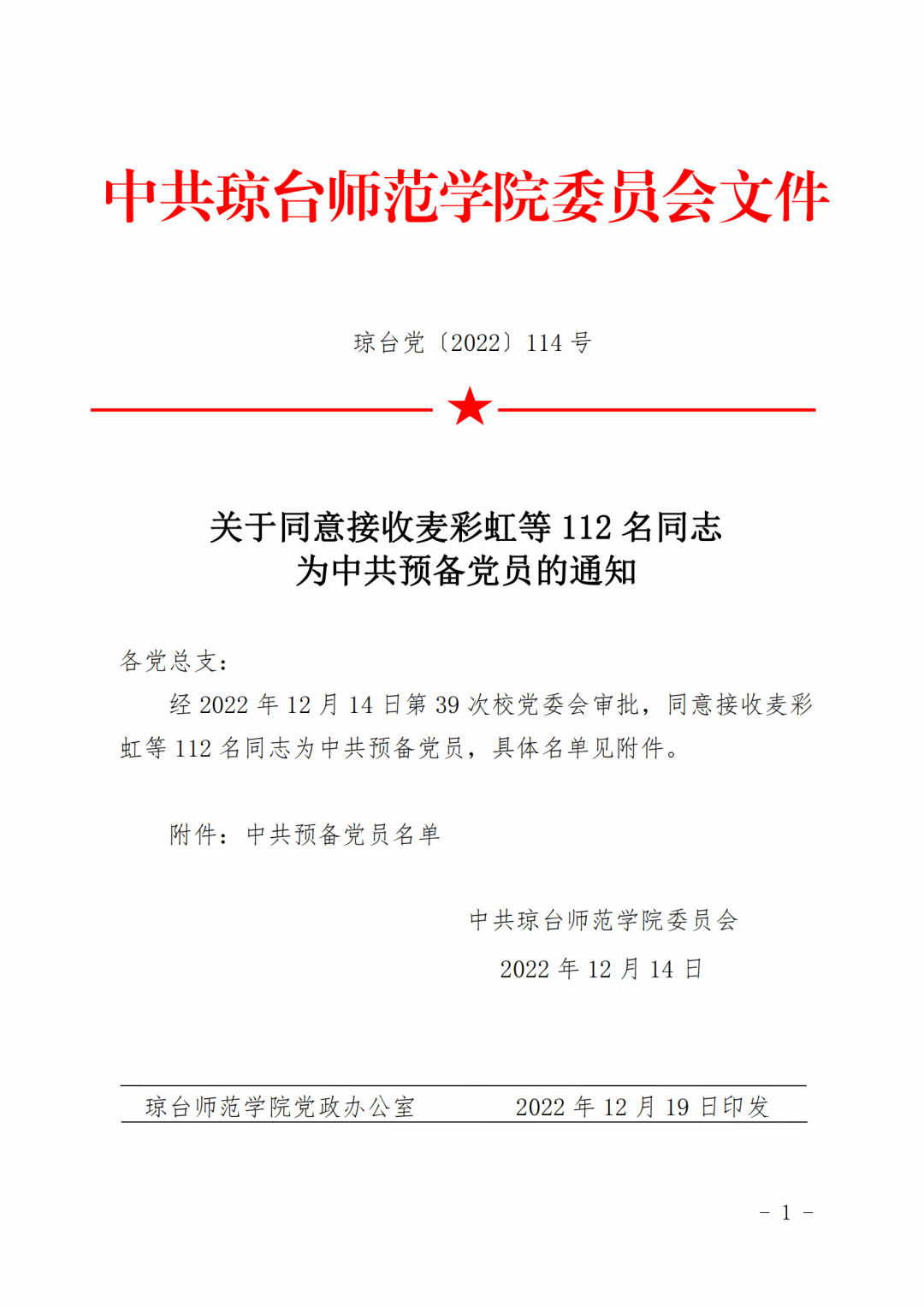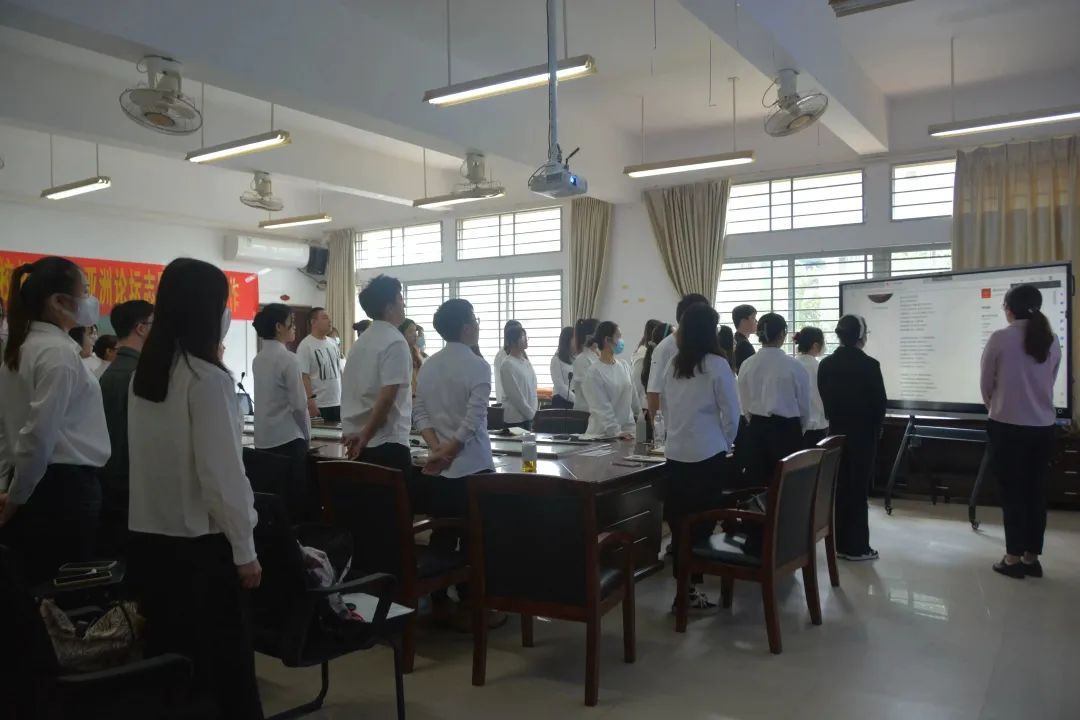 党支部书记祁文婧同志宣读学校党委关于同意接收中共预备党员的通知。经2022年12月14日第39次校党委会审批,同意接收我院陈怡颖、孙诗琪、莫胜天、陈政彤、张小琼、王俞皓、黄智怡、庞婕为中共预备党员。