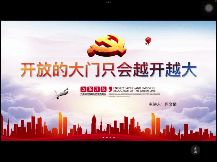 何文倩同志从深化改革,全面开放;克服困难,坚定开放;造福世界,主动开放这三方面来说明中国开放的大门只会越开越大,并介绍了中国在扩大开放方面采取的重要举措。何文倩同志表示,面对国际发展新形势,中国始终站在历史进步的一边,站在人类进步的一边,展示世界胸怀和大国担当,致力于携手各国,推动人类走向更加美好的未来。
