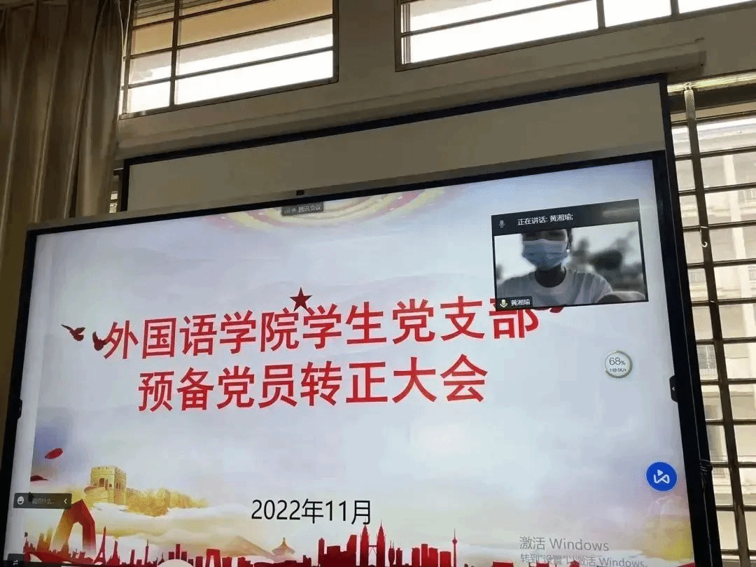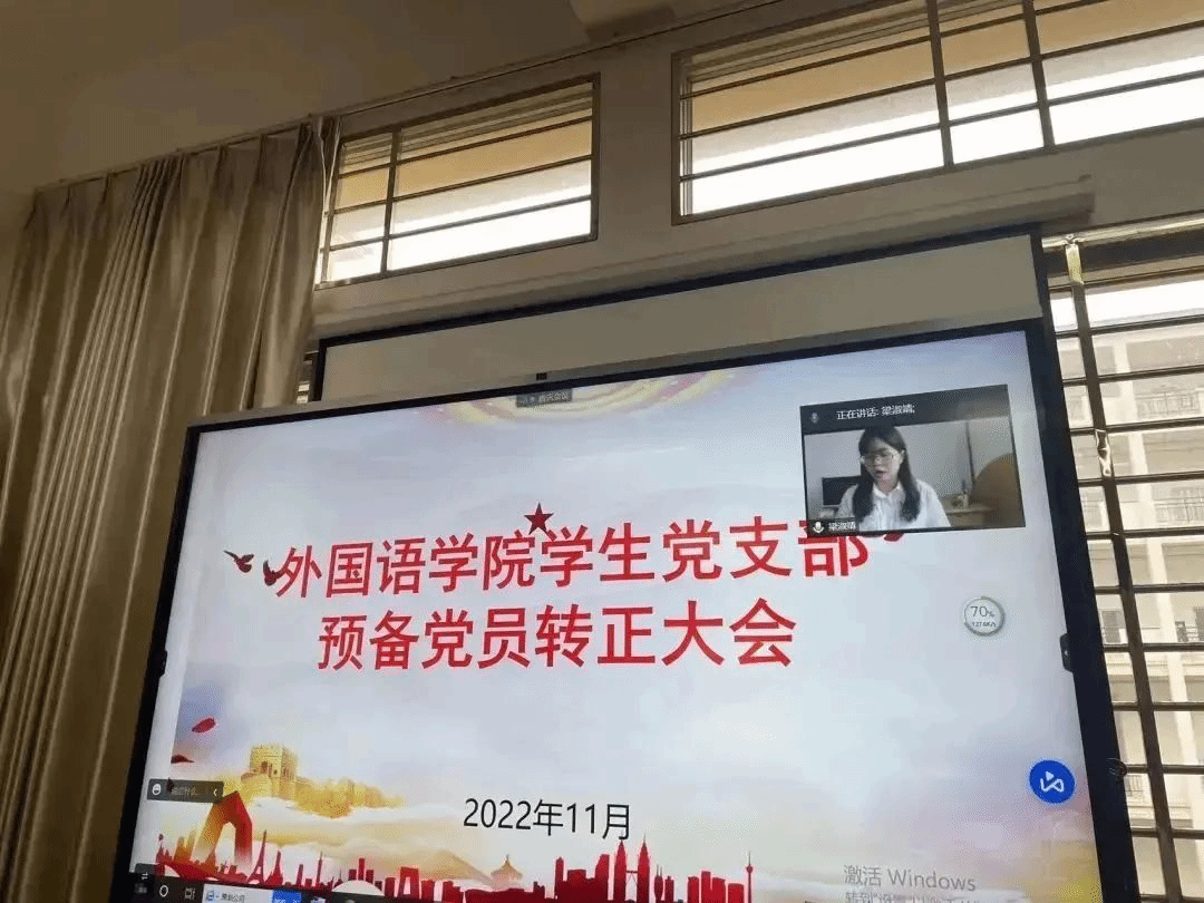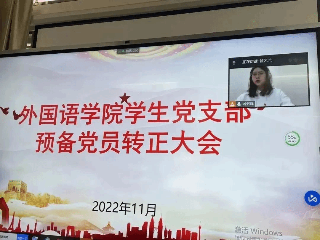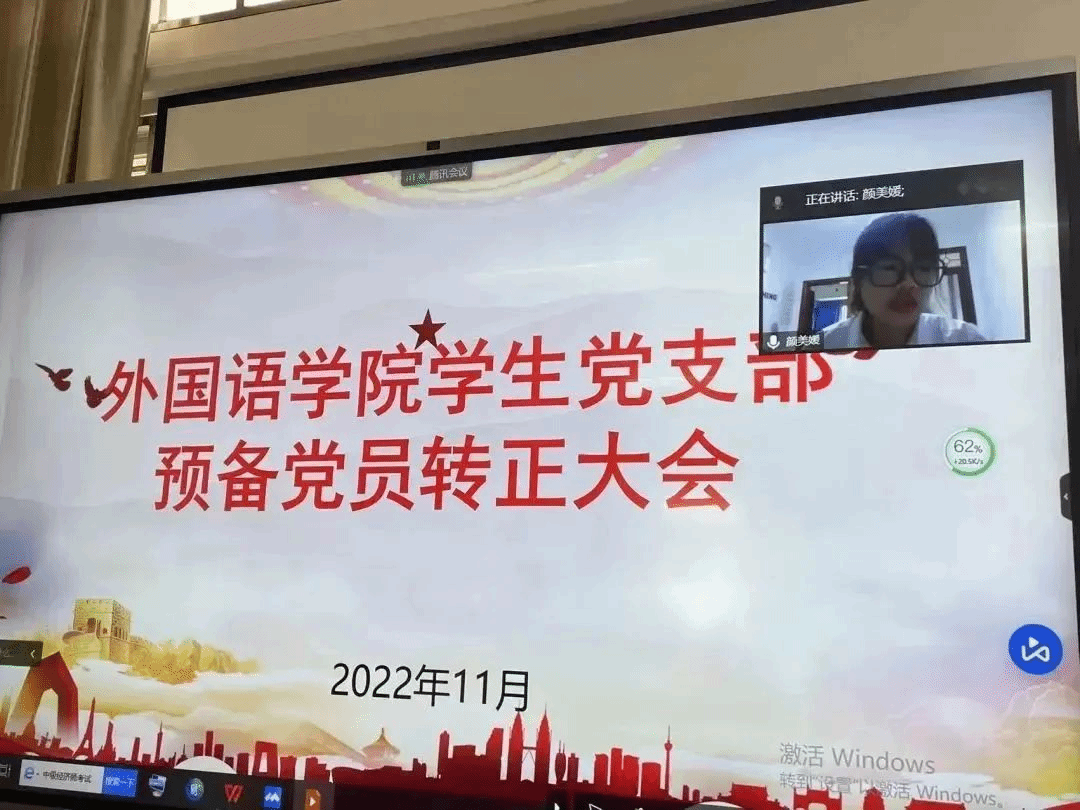 2022年11月4日,外国语学院党总支学生党支部在文B204党员活动室召开支部大会,本次大会主要议题为讨论预备党员韩雁丽等十一名同志的转正问题,鉴于疫情影响,本次会议采取线上线下相结合的方式。会议由党支部书记祁文婧同志主持,出席本次会议的还有党支部纪检委员孔燕同志、党支部宣传委员陈学同志、党支部支委委员陈芯妍同志和林紫荆同志、学生正式党员和预备党员。
