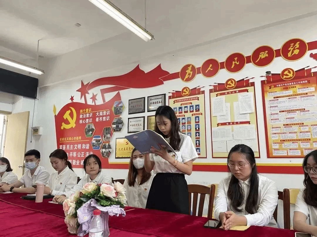 韩雁丽、梁淑靖、时佳琦、黄湘瑜、王宾彬、何传清、徐艺洋、何玉娟、李佳凌、胡艺峥、颜美媛十一位预备党员同志分别从思想、学习、工作和生活等方面介绍了一年考察期的情况,表明按期转为中国共产党正式党员的心愿及继续努力的决心。十一位同志在预备期期间,积极进取、不断学习党的理论知识,提高政治素养,积极争取向党组织靠拢,同时他们也勇于正视自身的不足,并下定决心努力克服缺点,进一步完善自我。