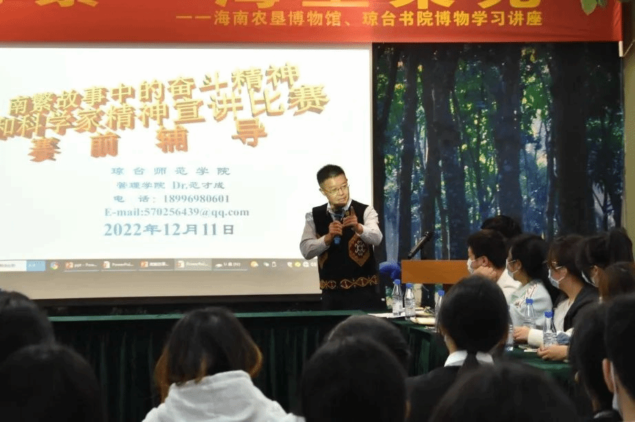 *注:海南省社科联社科普及项目《南繁故事中的奋斗精神和科学家精神》活动,由省社科普及示范基地:琼台书院博物馆和海南农垦博物馆共同组织举办,琼台师范学院团委、外国语学院承办。
