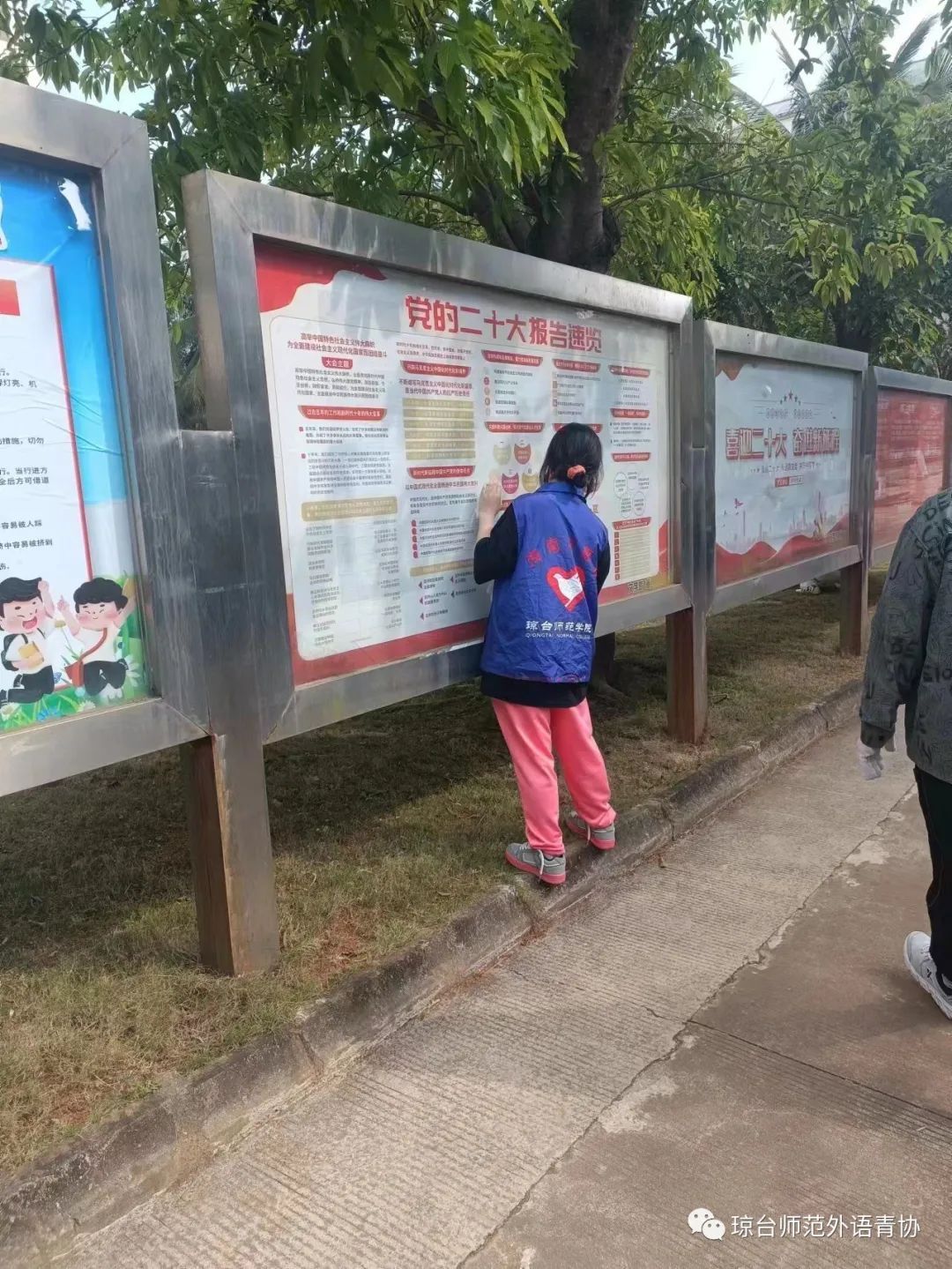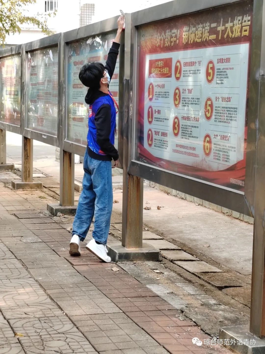 综合楼聚集着各个学院,有优美的歌声,妖娆的身姿,望而生畏的心理学等等。宣传栏里宣传着党的二十大精神,同学们路过会时不时看一眼,这正是我们打扫的意义!