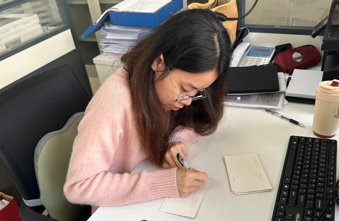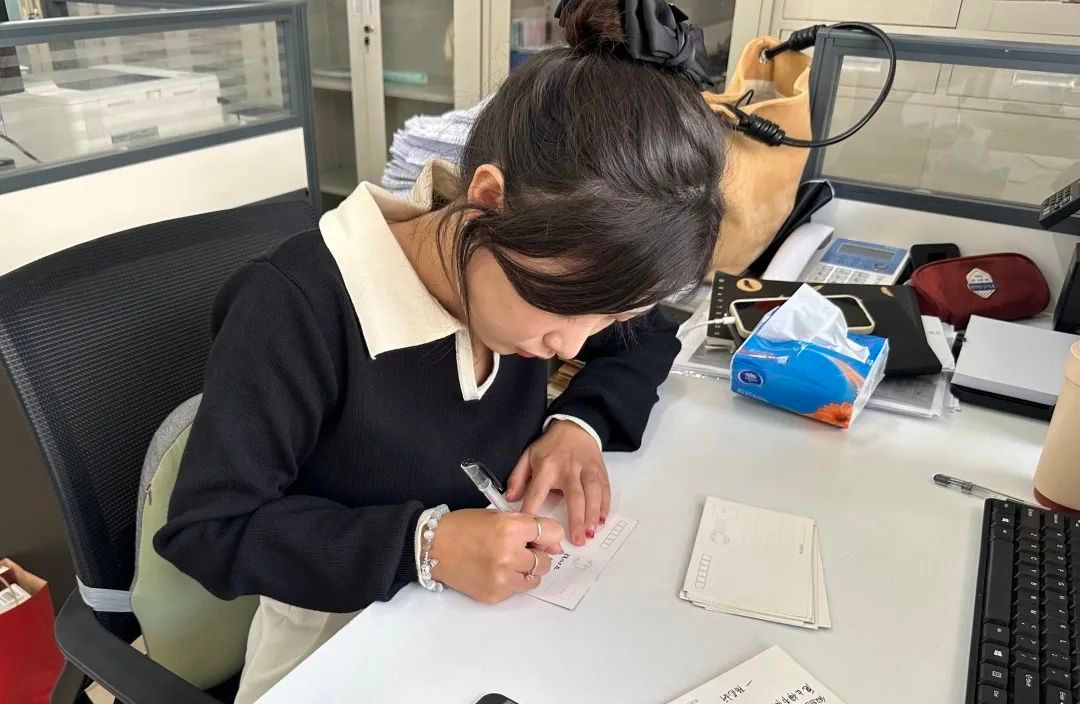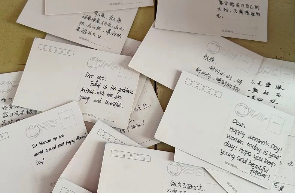 除了鲜花零食等小礼品,礼袋里还包含辅导员和同学们手写的“双语贺卡”,彰显外院特色的同时,致敬每一位不被定义的“她”。