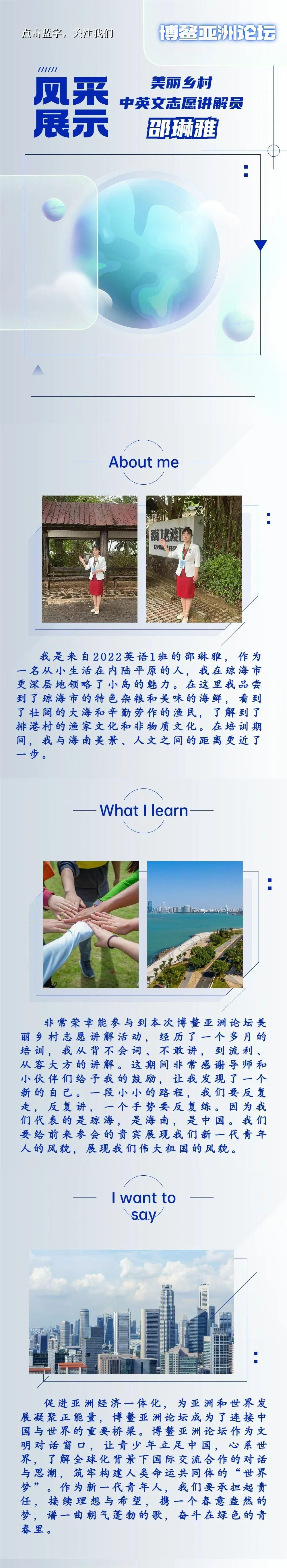 【博鳌亚洲论坛志愿活动专栏】风采展示|博鳌亚洲论坛美丽乡村中英文志愿讲解员邵琳雅
