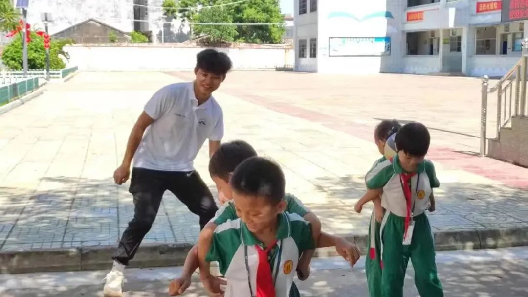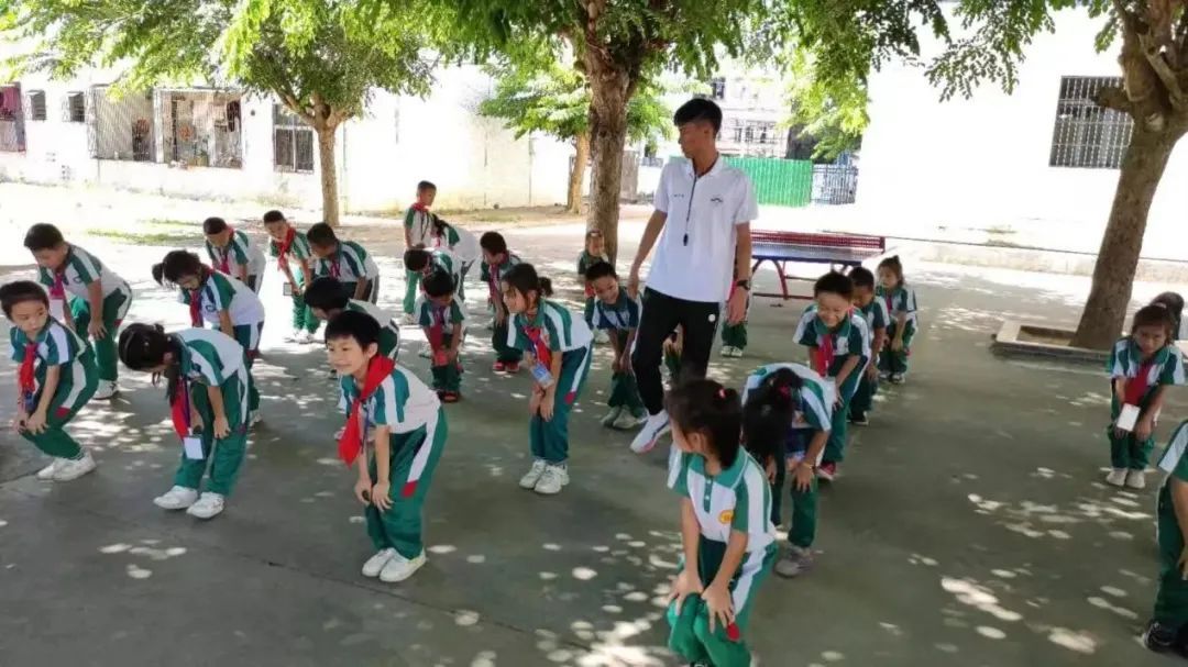 图为在中心小学两名体育教育专业的同学进行支教时带领学生们进行游戏的记录。在调研过程中,团队内的两名体育教育专业的同学分别给两个班级上了体育课,在课堂上学生积极主动性极高,非常配合两位“老师”,两位老师也通过有新意的体育活动带动学生们共同完成了一堂有趣的体育课!