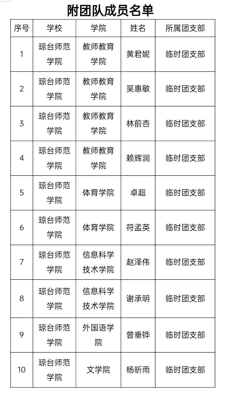 为充分发挥大学生所学所长,通过社会实践切实增强我校学生的实践能力、调研能力和问题分析解决能力,在社会实践中受教育、长才干、作贡献,2022年6月27日至7月1日,在定安县镇委、青少部部长等领导,及琼台师范学院团委的指导下,琼台师范学院“百千万工程”定安分队,赴定安开展暑期社会实践活动,团队内涵盖了外国语学院、教师教育学院、信息科学技术学院、文学院的学生,包括黄君妮、吴惠敏、林前杏、赖辉润、卓超、赵泽伟、符孟英、杨昕雨、曾垂铧、谢承明在内的十名成员在我院祁文婧老师的带领下,于定安县龙湖镇走访了包括居丁初级中学、龙湖镇中心学校、喜洋洋幼儿园、龙湖中心幼儿园、龙门中心小学在内的五所学校以及定安县教育局及龙湖镇人民政府。