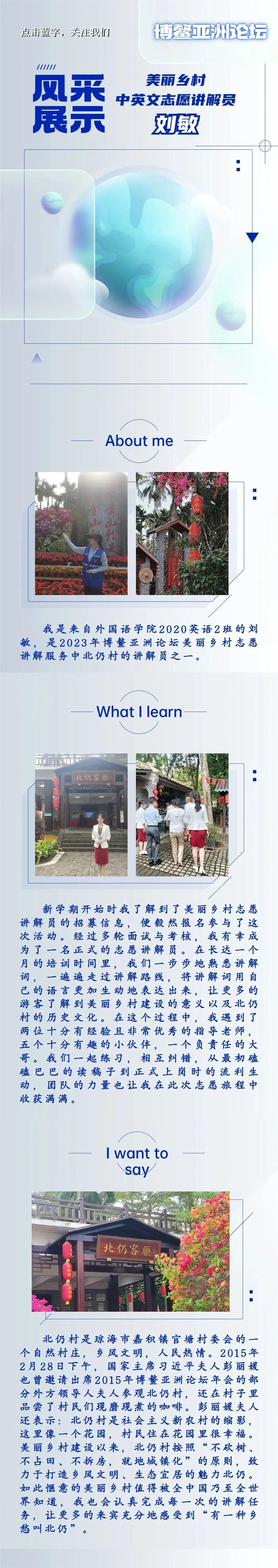 【博鳌亚洲论坛志愿活动专栏】风采展示|博鳌亚洲论坛美丽乡村中英文志愿讲解员刘敏