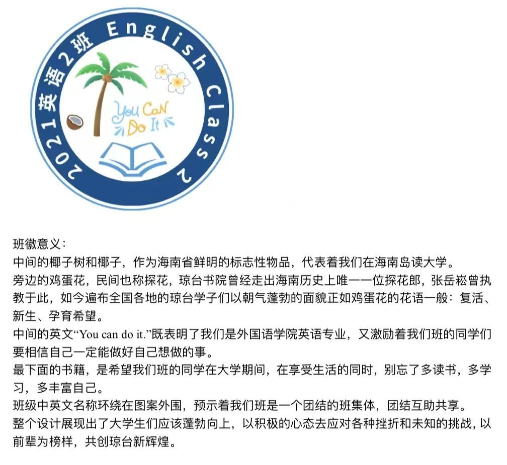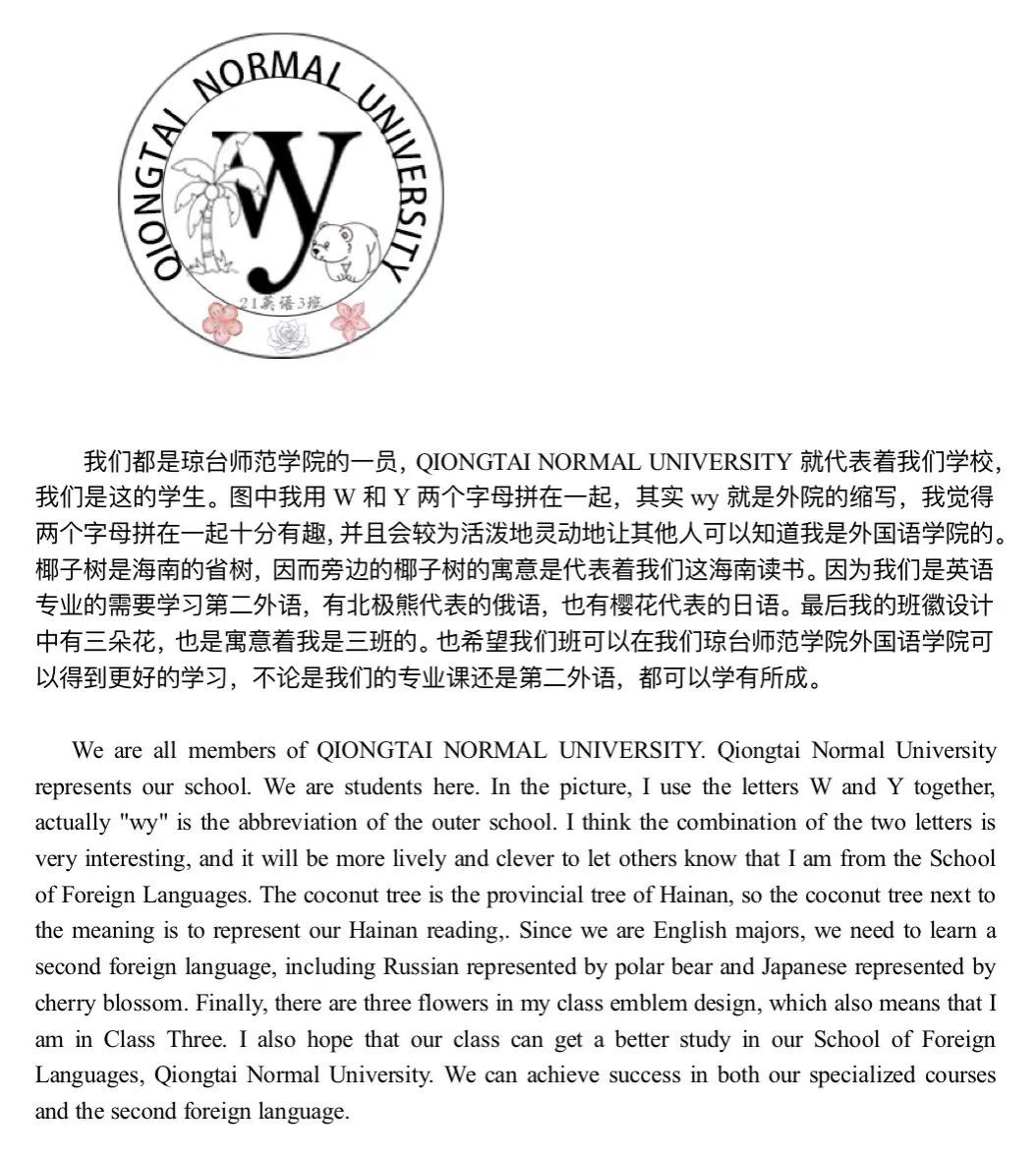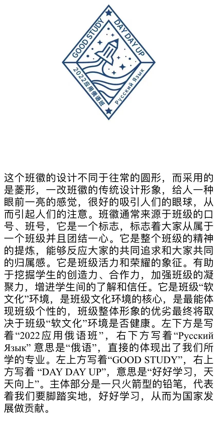 本次“多语种”班徽原创设计大赛给同学们提供了一个展示班级个性文化的平台,加深了大学生对集体主义精神的了解,提高了同学们的创新精神,促进了同学们对双语言的表达能力。希望通过本次活动能够进一步加强班风的建设,提高大家的个性发展。