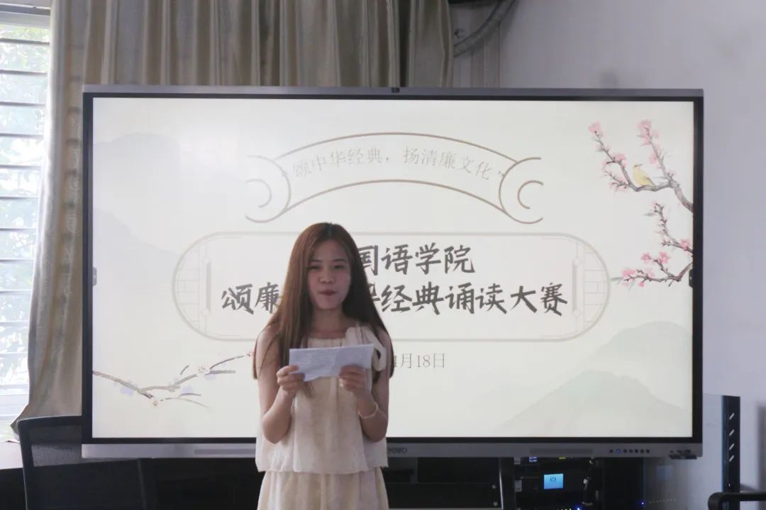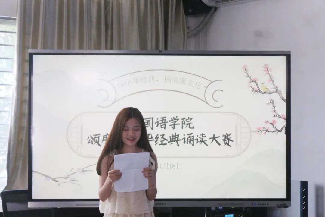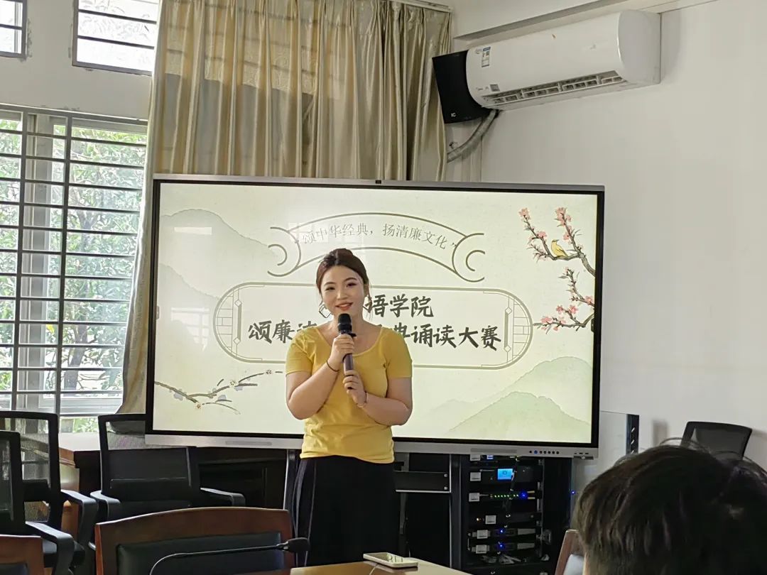 本次活动的开展,不仅为同学们提供了展示诵读能力的机会,也让大家感受到中华文化的无穷魅力,在学生的心灵播下“清廉”的种子,树立“敬廉崇洁”的思想,引导学生做到自尊自爱,做遵纪守法的社会主义建设者和接班人。