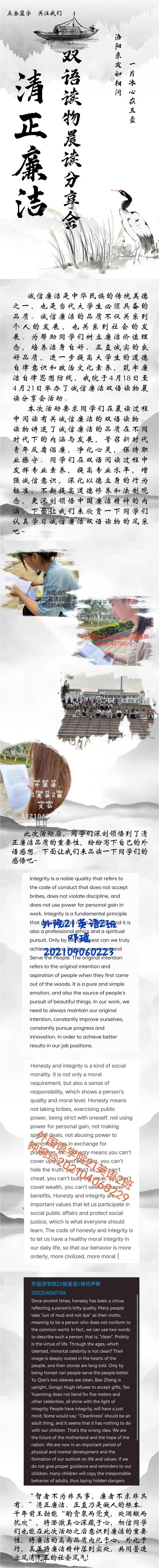 【廉洁教育】我院诚信廉洁双语读物晨读分享会顺利开展!