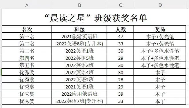 恭喜获奖的各位获得晨读之星的班集体。 当然,他们的优秀也得到了学院的奖品: