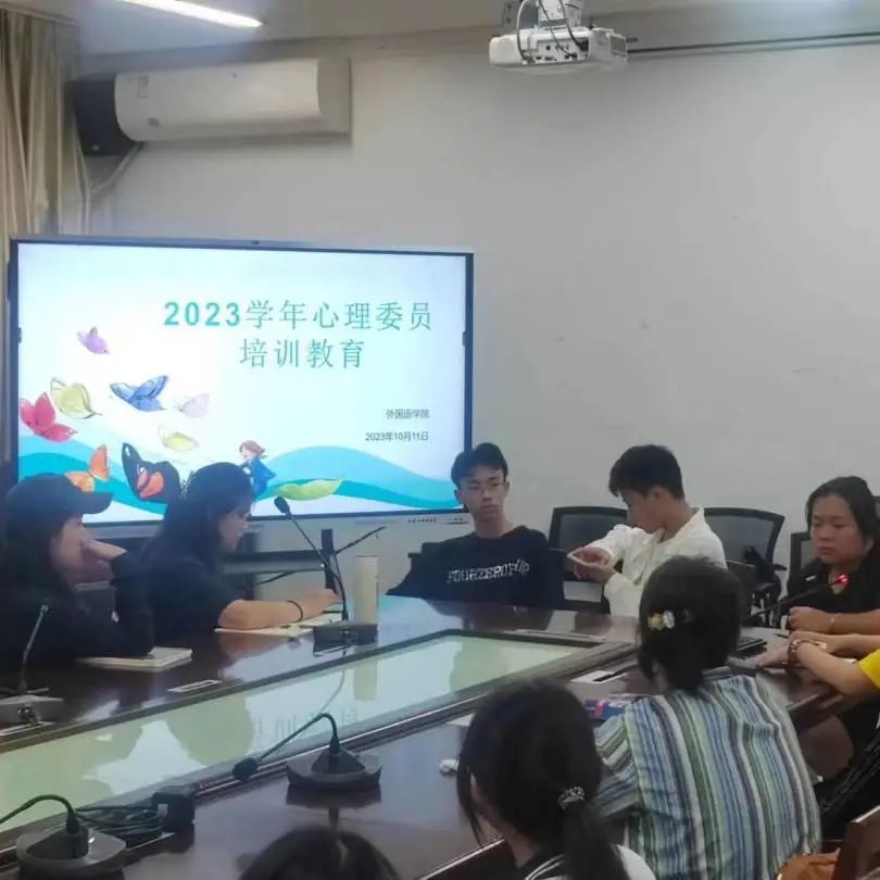 当代大学生是祖国的未来和栋梁,加强大学生群体的心理健康教育,培养身心健康的大学生群体关系到国民精神风貌和精神文明建设。因此,进一步宣传和普及心理健康知识,传播心理健康理念,营造有利于学生身心健康发展的校园环境和氛围,提高我院学子的心理健康水平和素养能力,2023年10月11日,外国语学院开展了大学生心理健康教育,并组织了2022级及2023级班级心理委员培训会议。