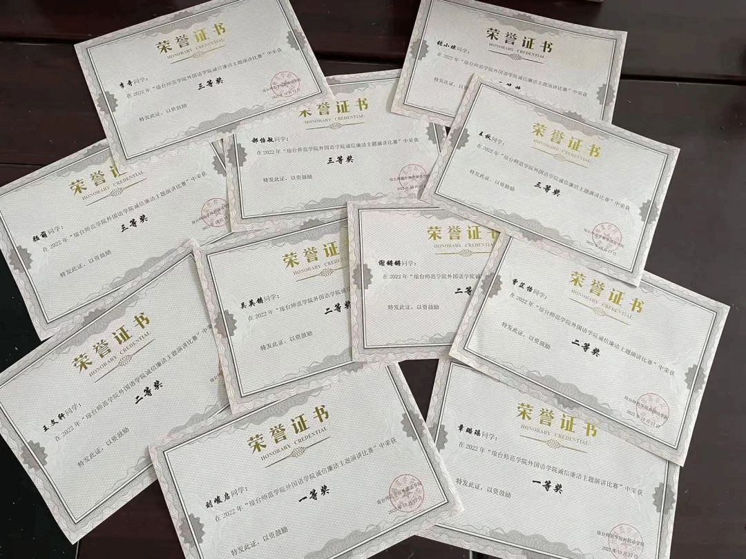 中华传统文化博大精深,诚信廉洁文化包含其中,赓续传承至今。通过聆听同学们精彩的演讲,我们真真切切的感受到大家对诚信廉洁传统文化的肯定,赞扬与支持。经过激烈的角逐和紧张的打分环节,最终,我们评选出一等奖两名,二等奖四名,三等奖五名。