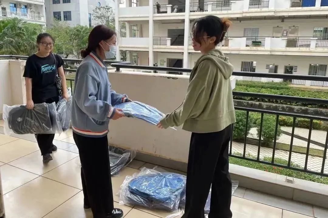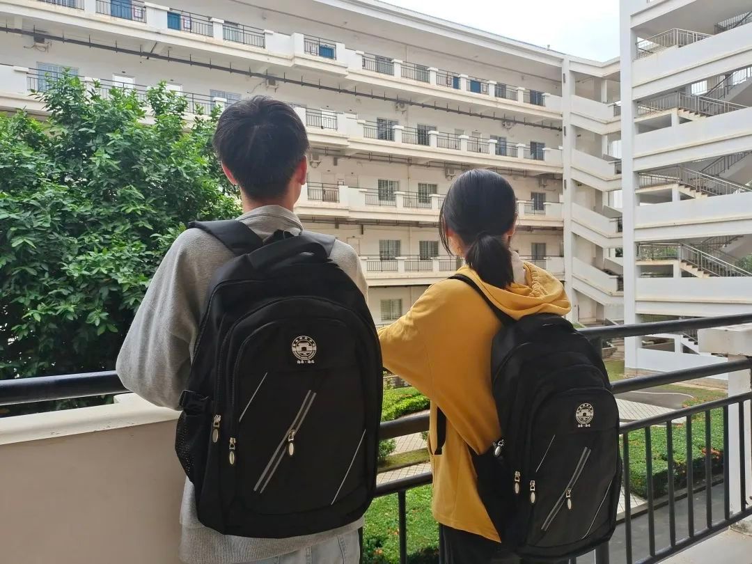书包上的校徽,记录着琼台三百年的校史,“宣德育人,衍道敦行。”八字校训深深烙印在每位琼台学子的心中。小小的书包,不仅仅是琼台的象征,更意味着传承,愿2022级学子们继续带着这份关爱和祝福,在日后的生活中发光发热。