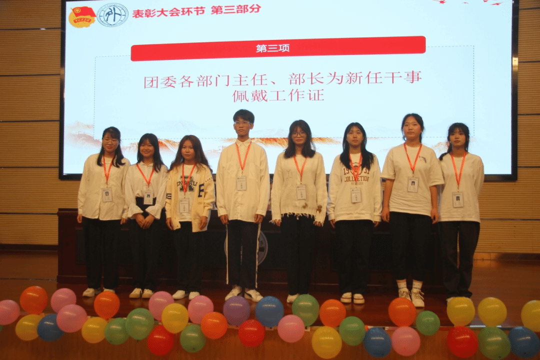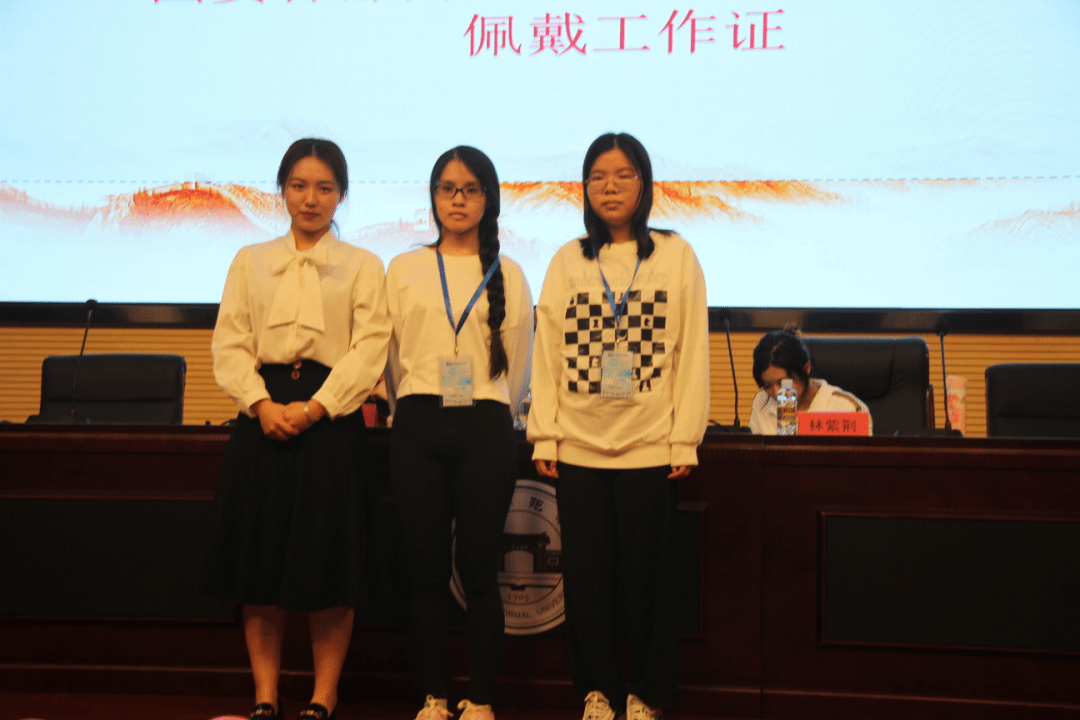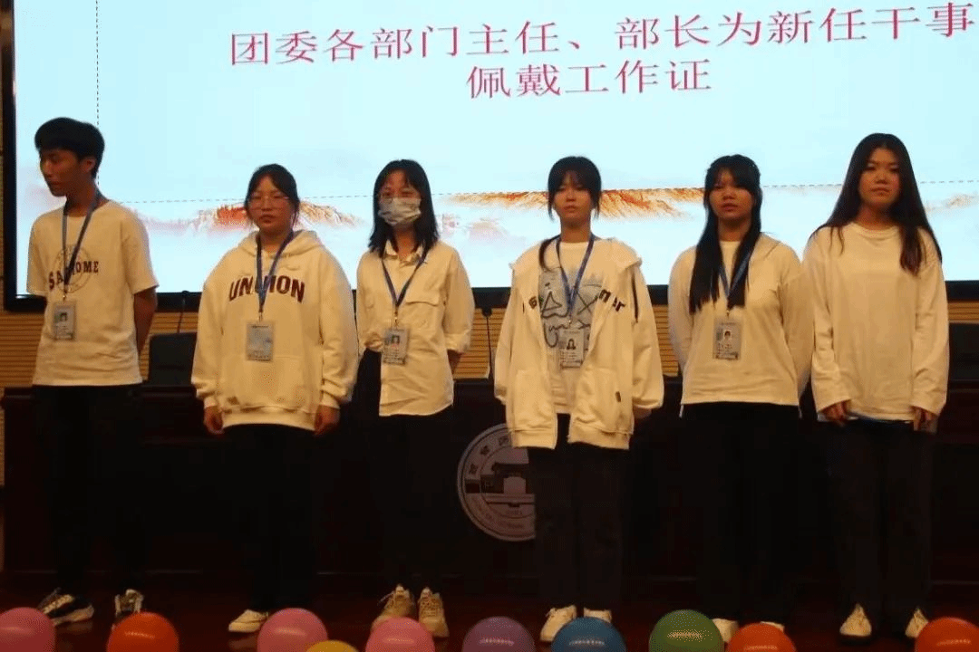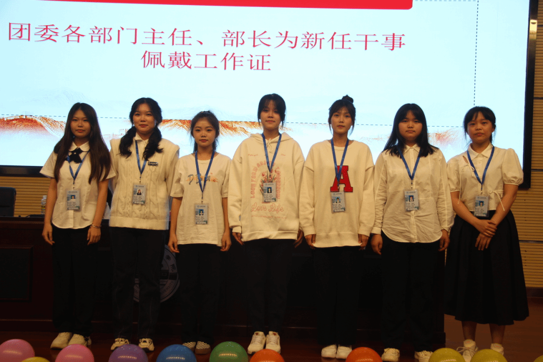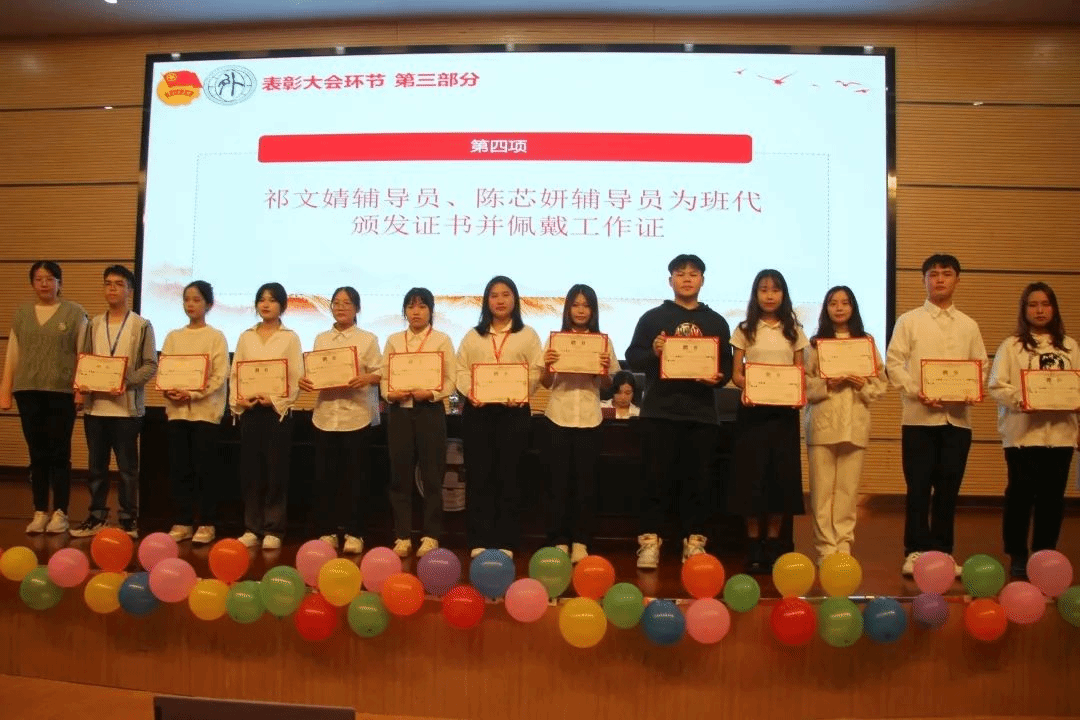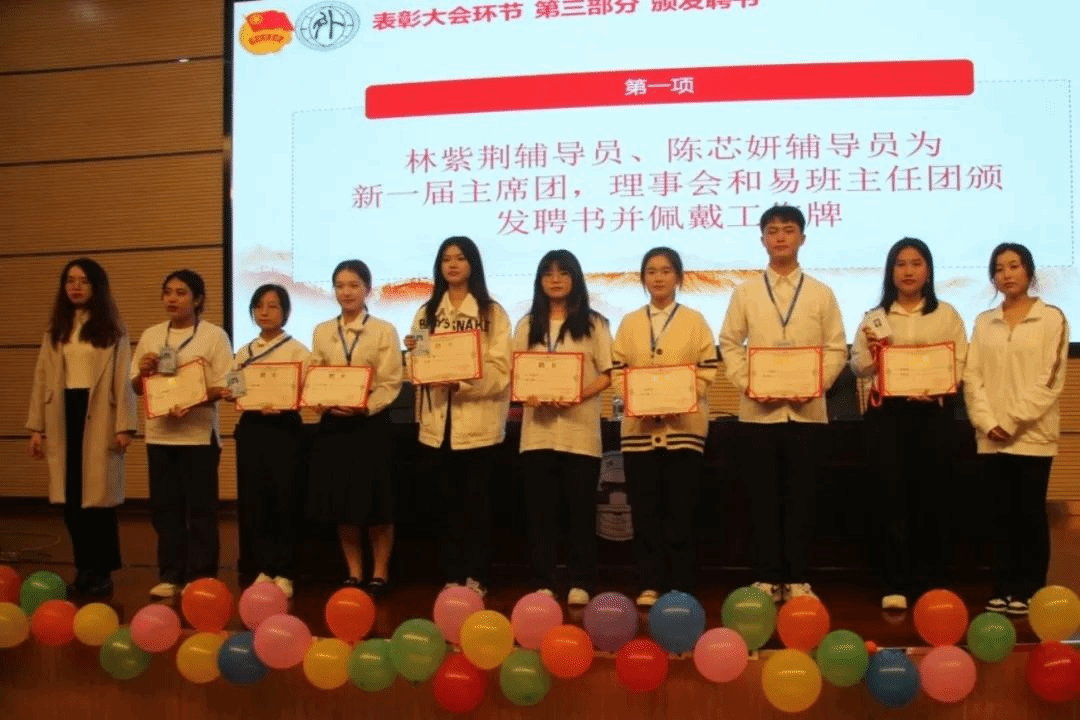团委书记林紫荆老师、团委副书记陈芯妍老师为新一届主席团、理事会和易班主任团颁发聘书并佩戴工作牌。