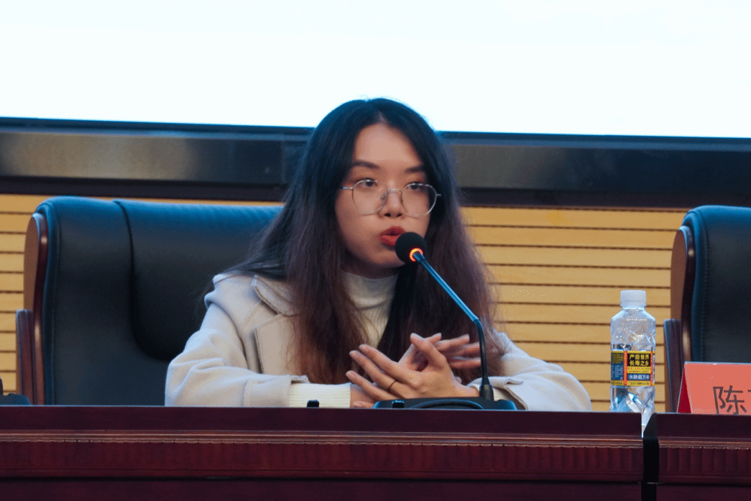 陈芯妍老师首先祝贺了新上任的部长、干事。她提到,这次会议对新一届团委学生会意义重大。这是一个新老更替的仪式,说明我们外国语学院团委是一个整体,各项工作的有序进行依赖于各部门之间的齐心协力,同舟共济。我们要永远怀有热忱之心面对工作学习。