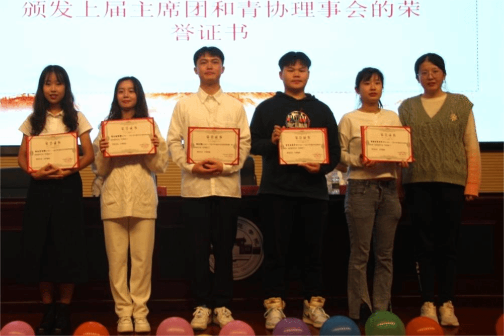 首先辅导员祁文婧老师为上一届主席团和青协理事会颁发奖状。