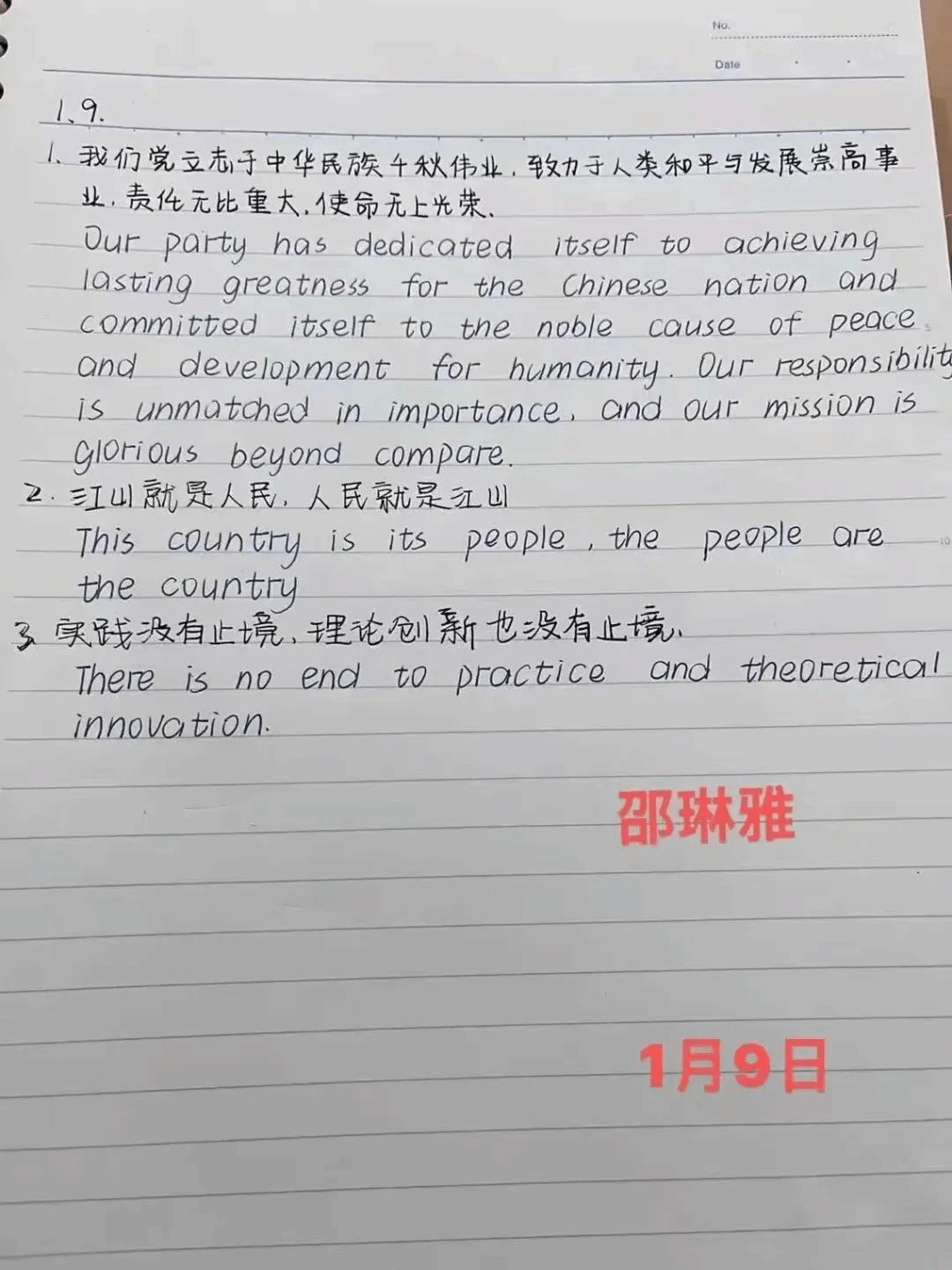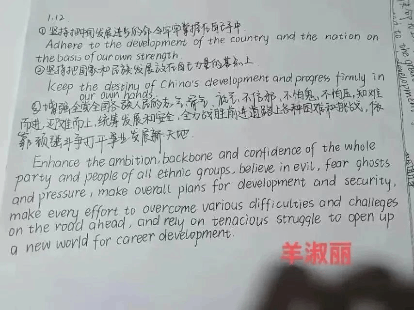本次活动的开展为同学们的外语学习提供了新的角度与思路。在书写与翻译的过程中既夯实了外语学习的基本功,又加深了对党的二十大的理解。身为青年的我们要认识到实现中华民族伟大复兴必须坚持中国共产党的领导,踊跃投身祖国伟大建设实践,不断锤炼品质意志,与祖国发展同频共振,收获精彩人生。