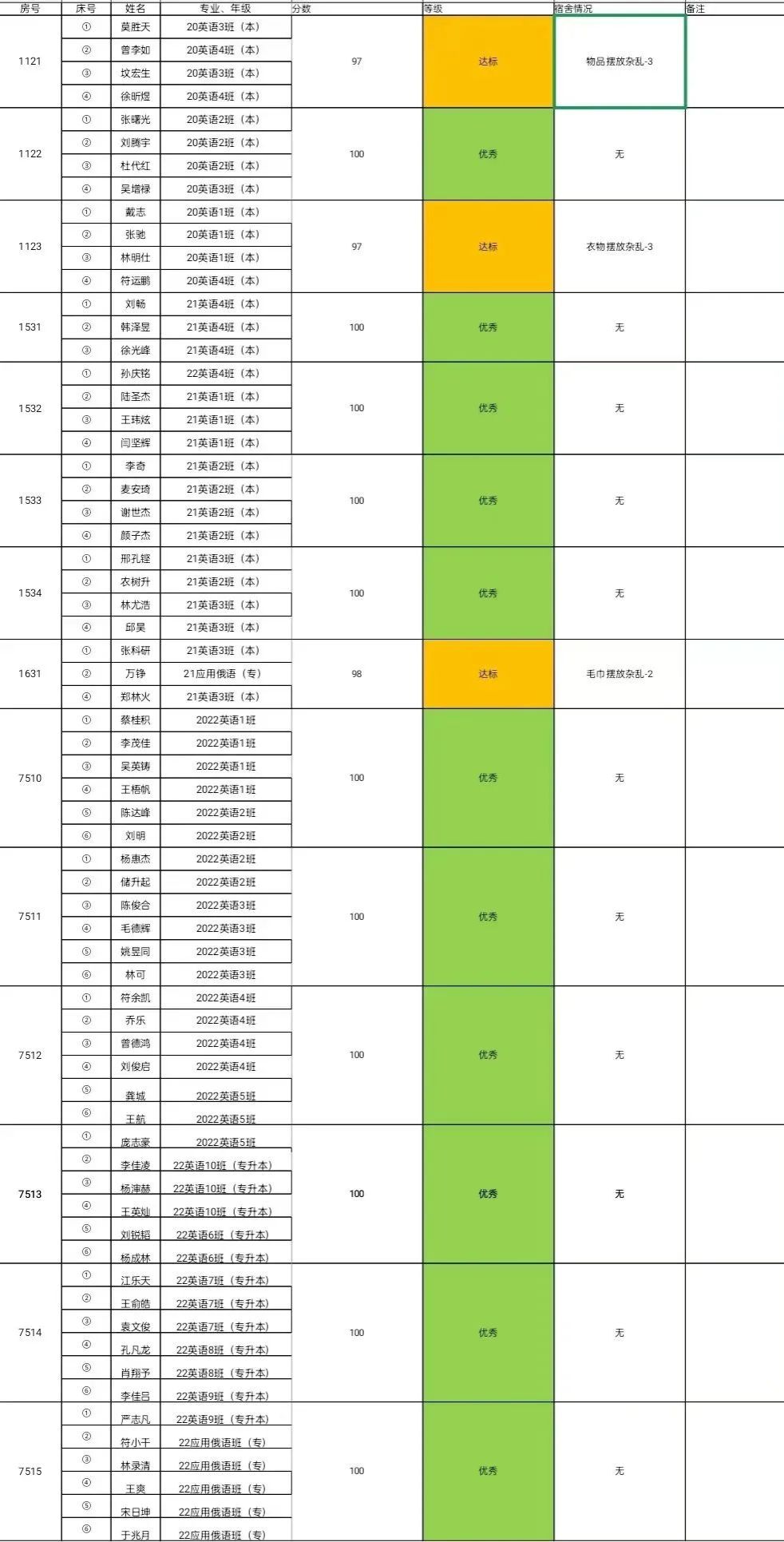 接下来让我们看一下自己宿舍的具体得分情况吧!