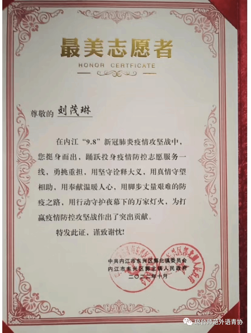 2021旅游英语班刘茂琳的内江抗疫