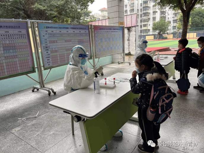 疫情刚开放的时候,各个学校需开展核酸检测工作,他在金钟小学实习期间,主动申请做一名核算提取人员,并去医院学习了如何穿脱防护服。随着疫情的开放,学校的学生和老师纷纷感染上新冠病毒,而他一直都没有被感染,所以参与开展核酸检测的老师最后只剩下他一个人继续坚持在岗位上工作,他也将这份工作一直坚持到了实习结束。