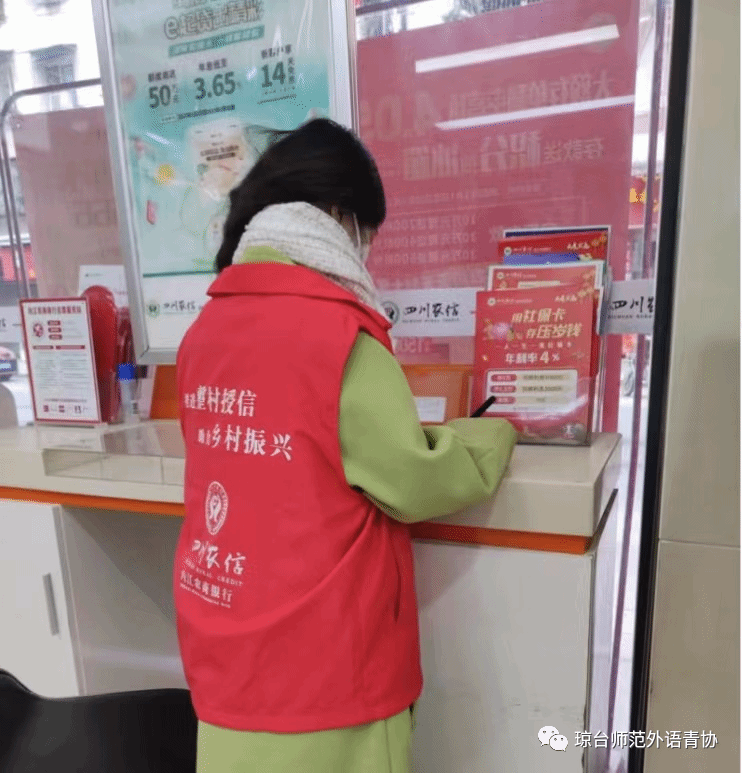 2022年9月底,疫情席卷了整个内江,她以一名大学生志愿者的身份深入到疫情防控一线的队伍中,在疫情防控一线留下了青春靓丽的身影。她用实际行动践行了一名大学生志愿者身上的重任。在寒假期间,她还参与了社区农村信用社的志愿服务,在前台大堂帮助办业务的客户进行了业务指导。